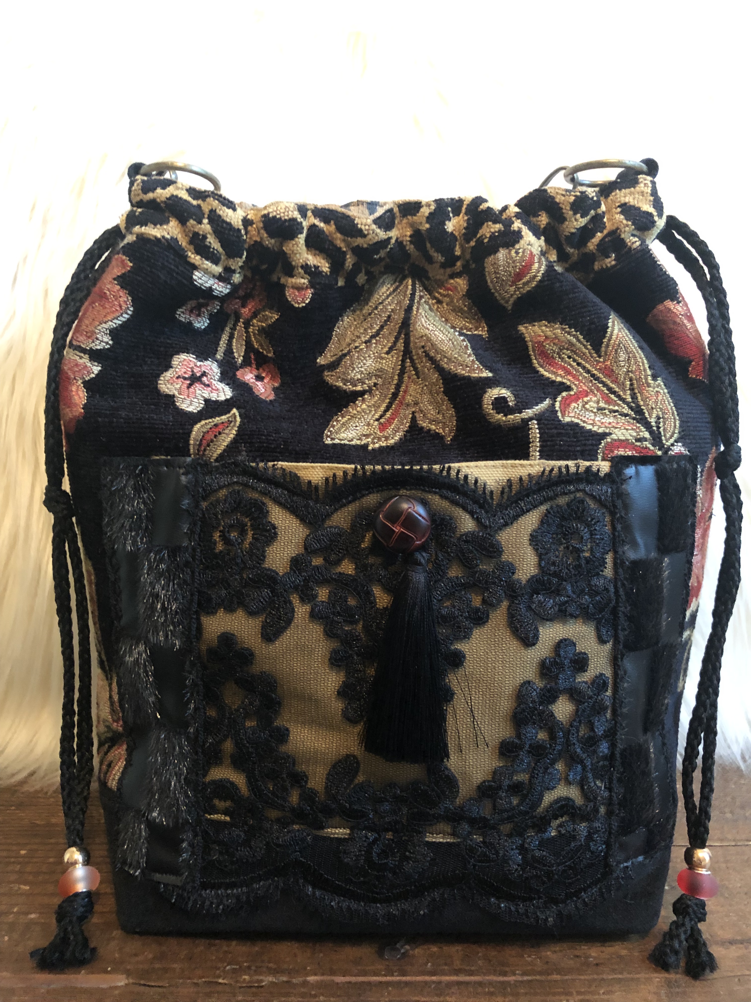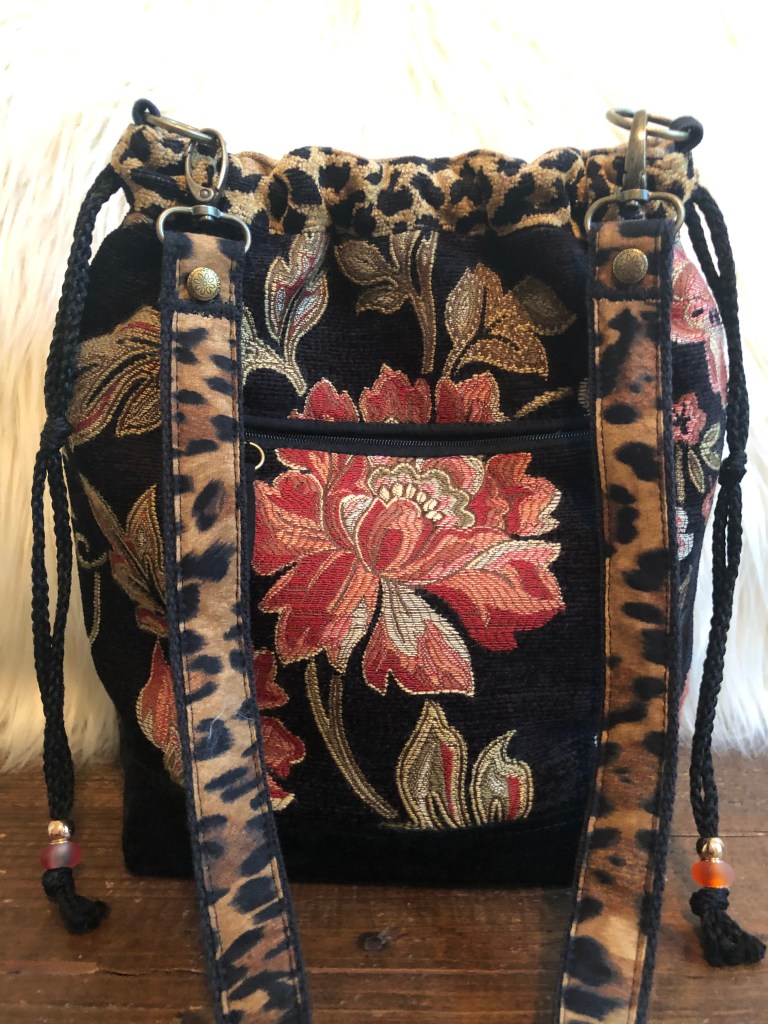 All Dolled Up This is a 10″ x 11″ x 4″ Shoulder bag with a 32″ strap, a front I-phone slip pocket, a back zip pocket, 6 interior slip pockets of various sizes and an interior zip pocket as well. $72 All Dolled Up (front) All Dolled Up (interior) All Dolled Up (back) Share this:Tweet