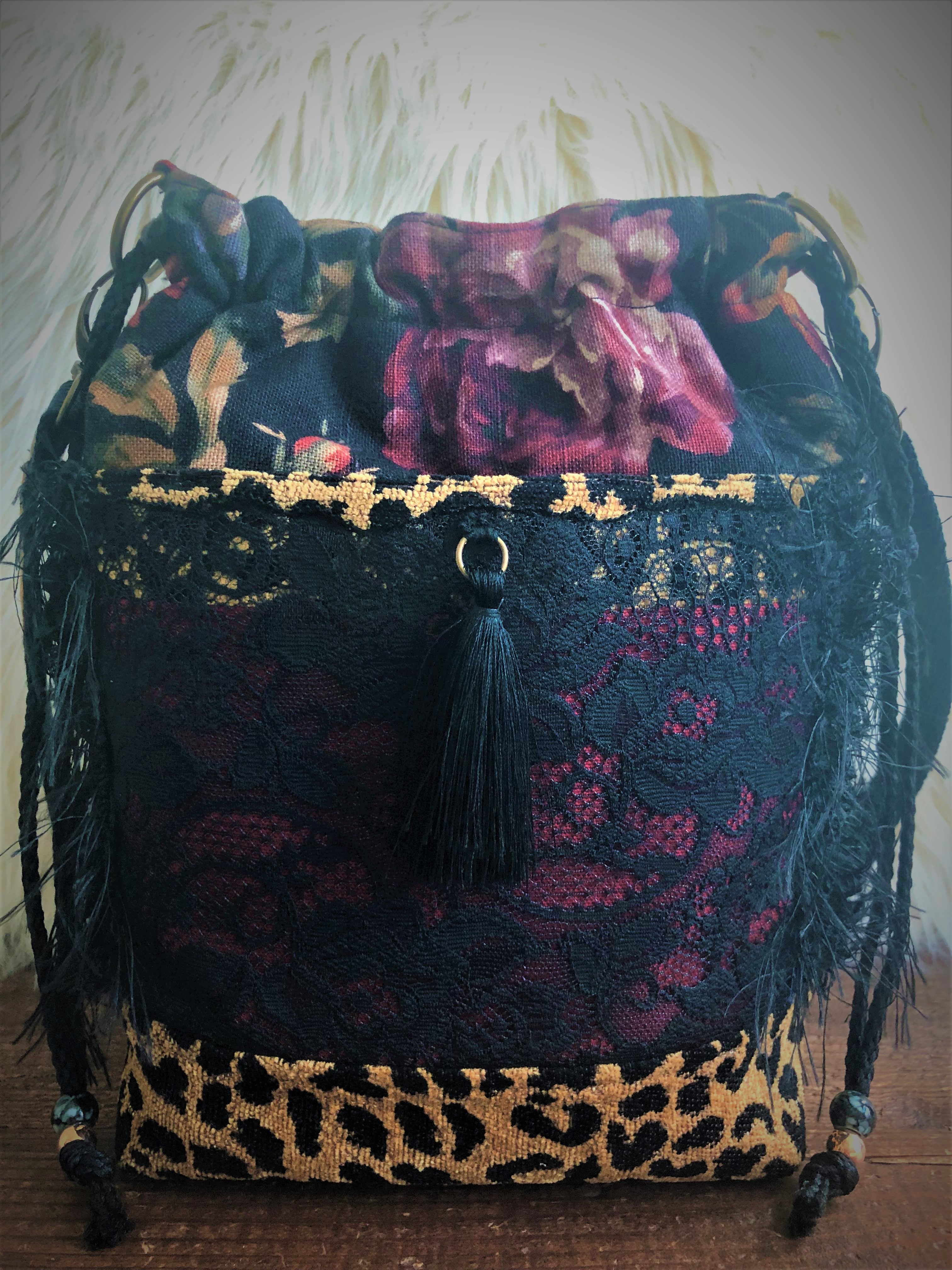 Black Lace This is a 9″ x 10″ x 3″ small shoulder bag with a 31″ strap, front slip pocket, a back zip pocket, 4 interior slip pockets as well as an interior zip pocket $65 Black Lace (front) Black Lace (interior) Black Lace (back) Share this:Tweet