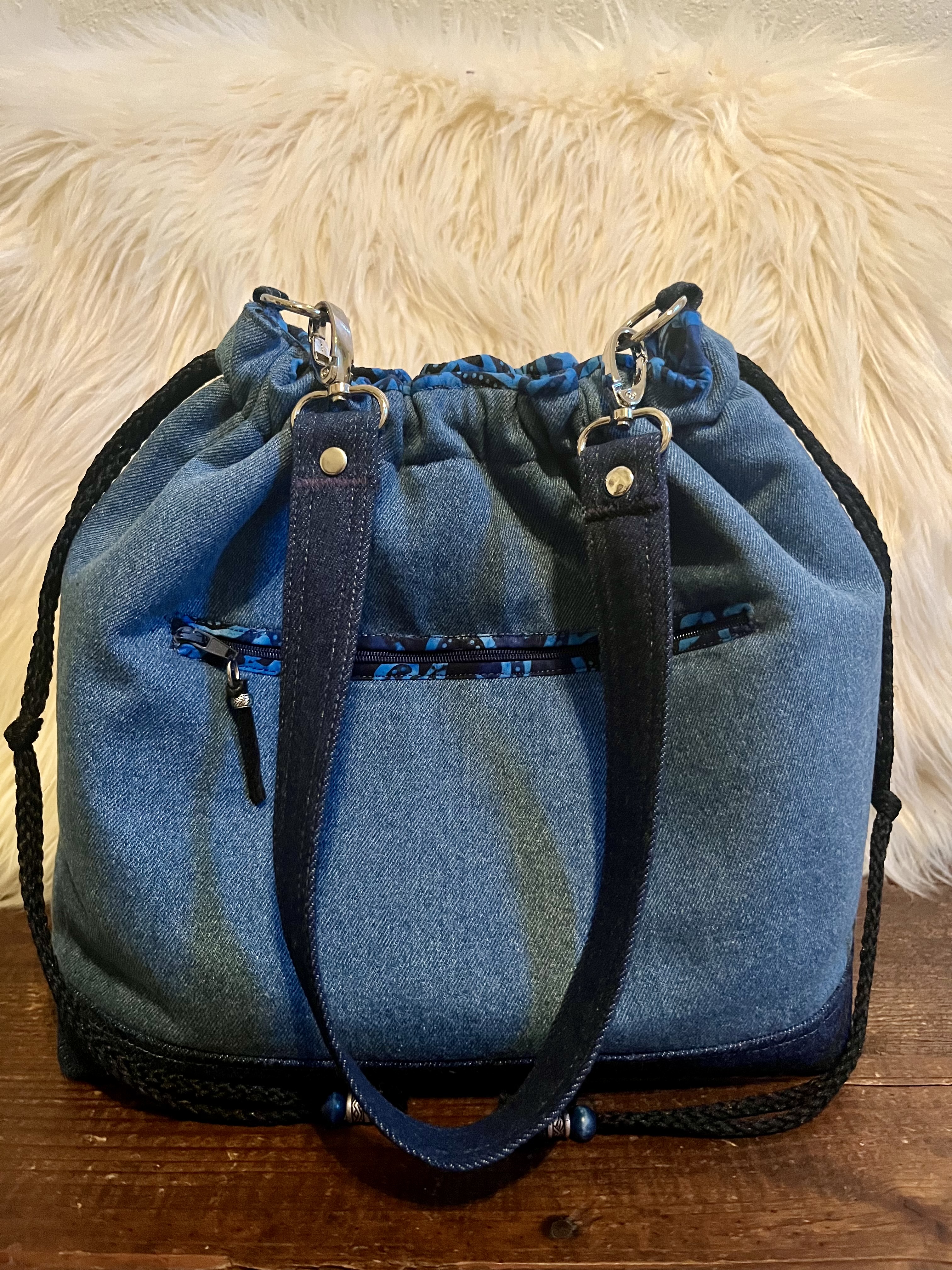 Blue Midnight This is a Draw/snap closure, Shoulder Handbag, with a 25″ strap that tucks under the arm perfectly, a front slip pocket, a back zip pocket, purse feet, 6 interior slip pockets as well as a zip pocket. $74 Blue Midnight (front) Blue Midnight (interior) Midnight Blue (back) Share this:Tweet