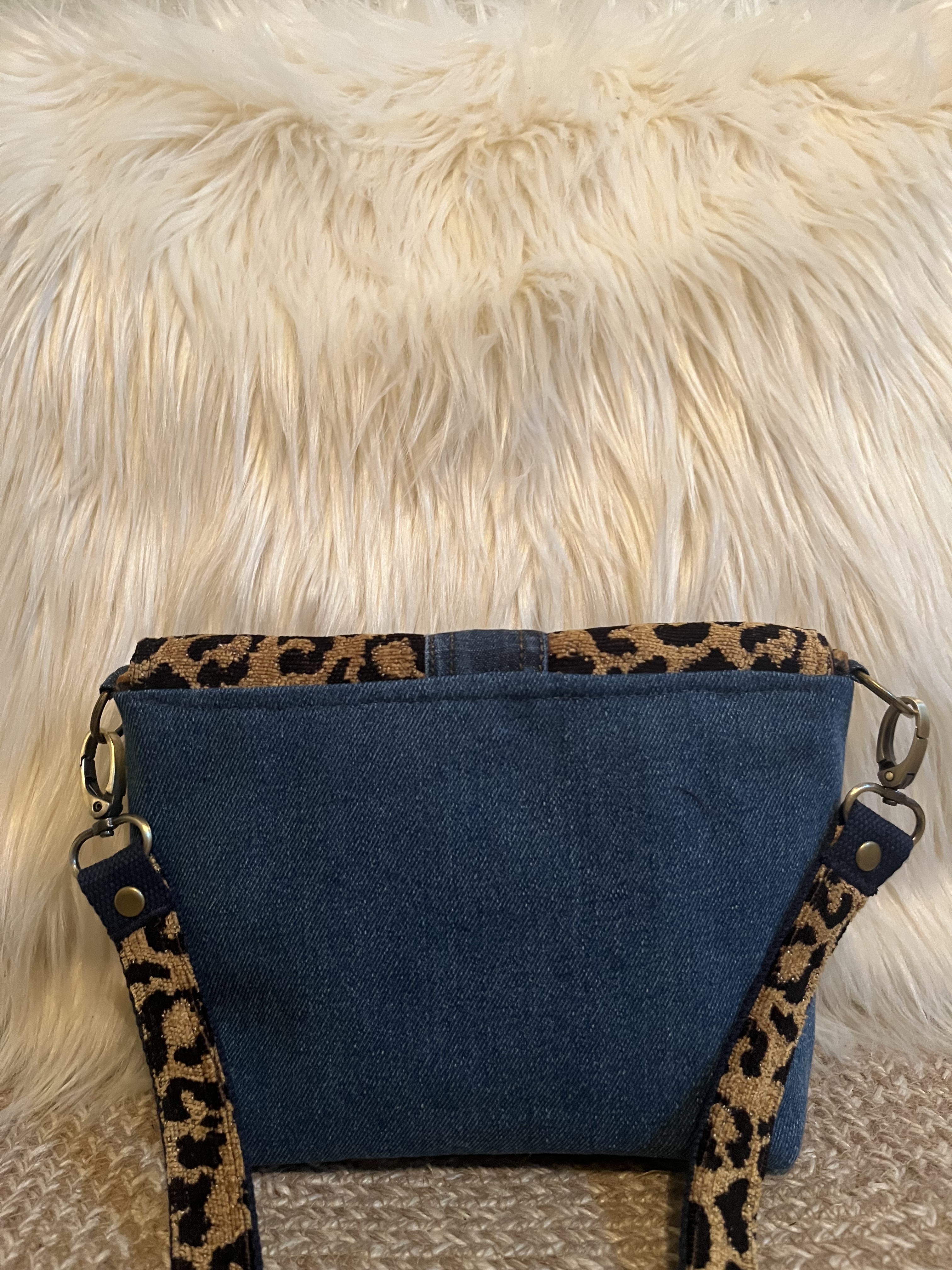 Brookes Leopard This is a small 9″ x 7″ x 3″ cross-body with a 38″ strap, a front zip pocket, an interior slip pocket and a decorative leopard/denim flap. $49 Brookes Leopard (front) Brookes Leopard (interior) Brookes Leopard (back) Share this:Tweet