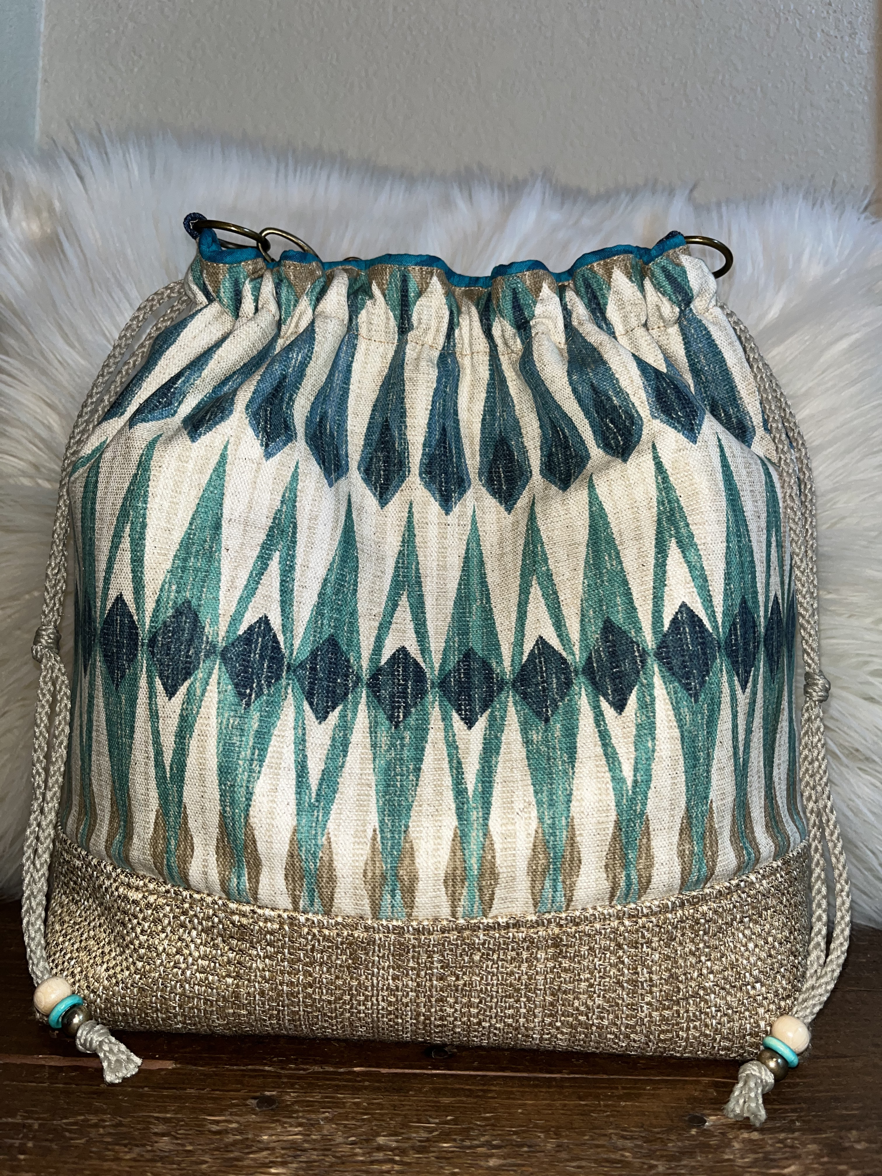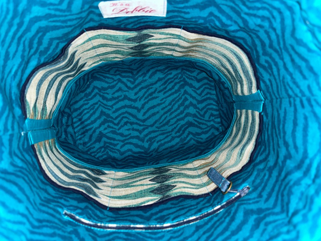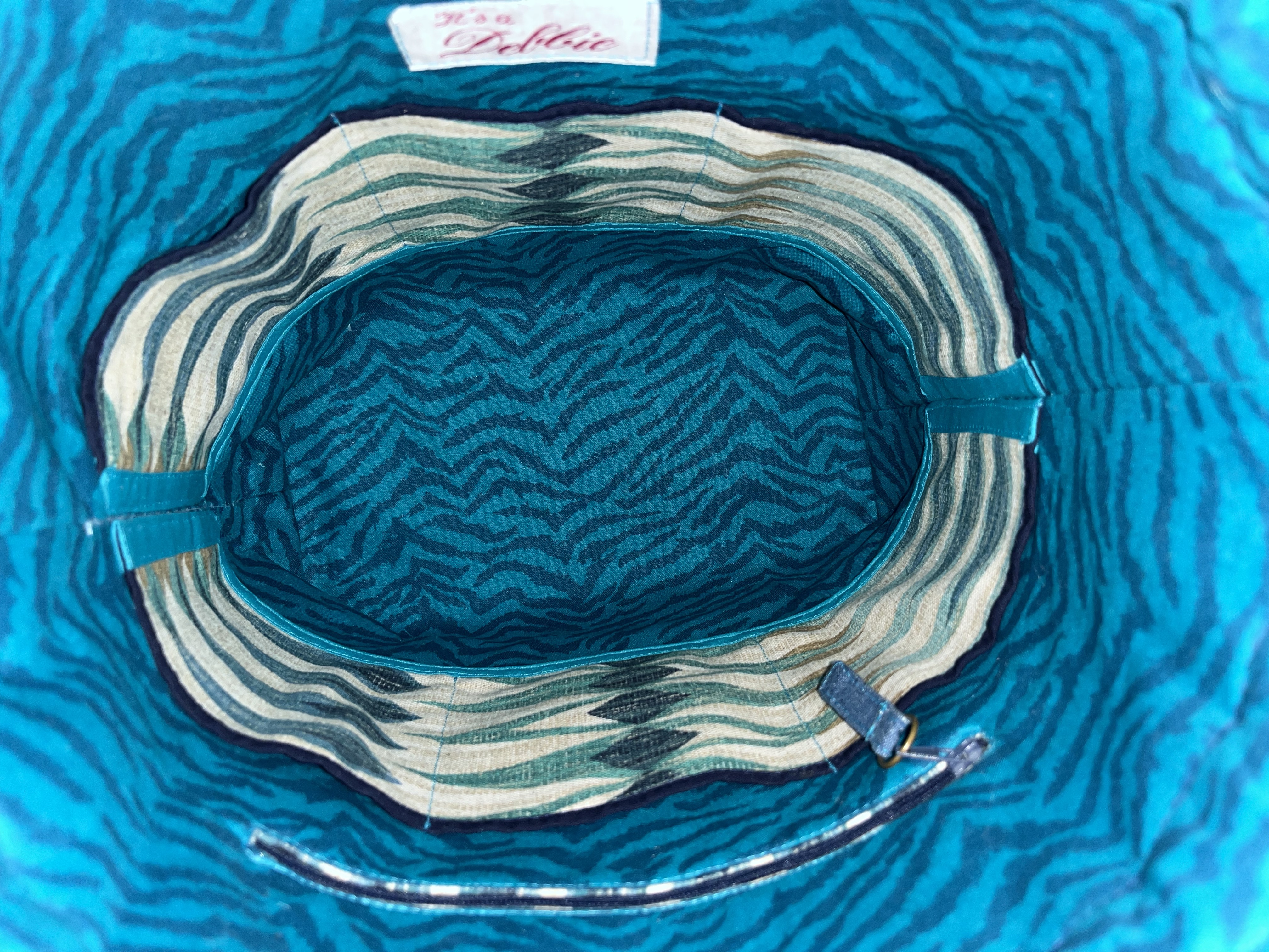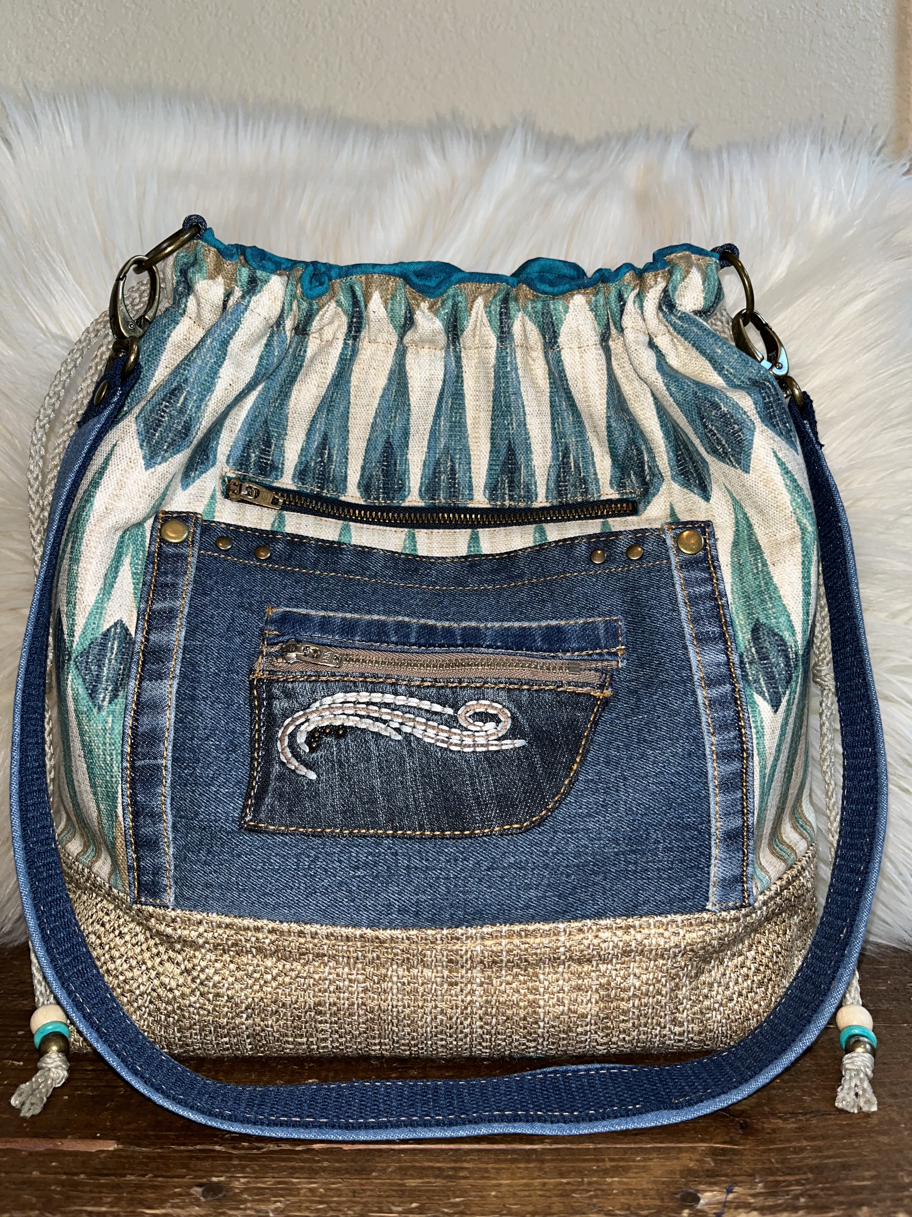 Catalina This is a 13” X 13” X 4” Shoulder Bag with a drawstring/snap closure, 33” strap, a front slip pocket, and 2 small zip pockets, 6 interior slip pockets as well as a zip pocket. $74 Catalina (front) Catalina (interior) Catalina (back) Share this:Tweet
