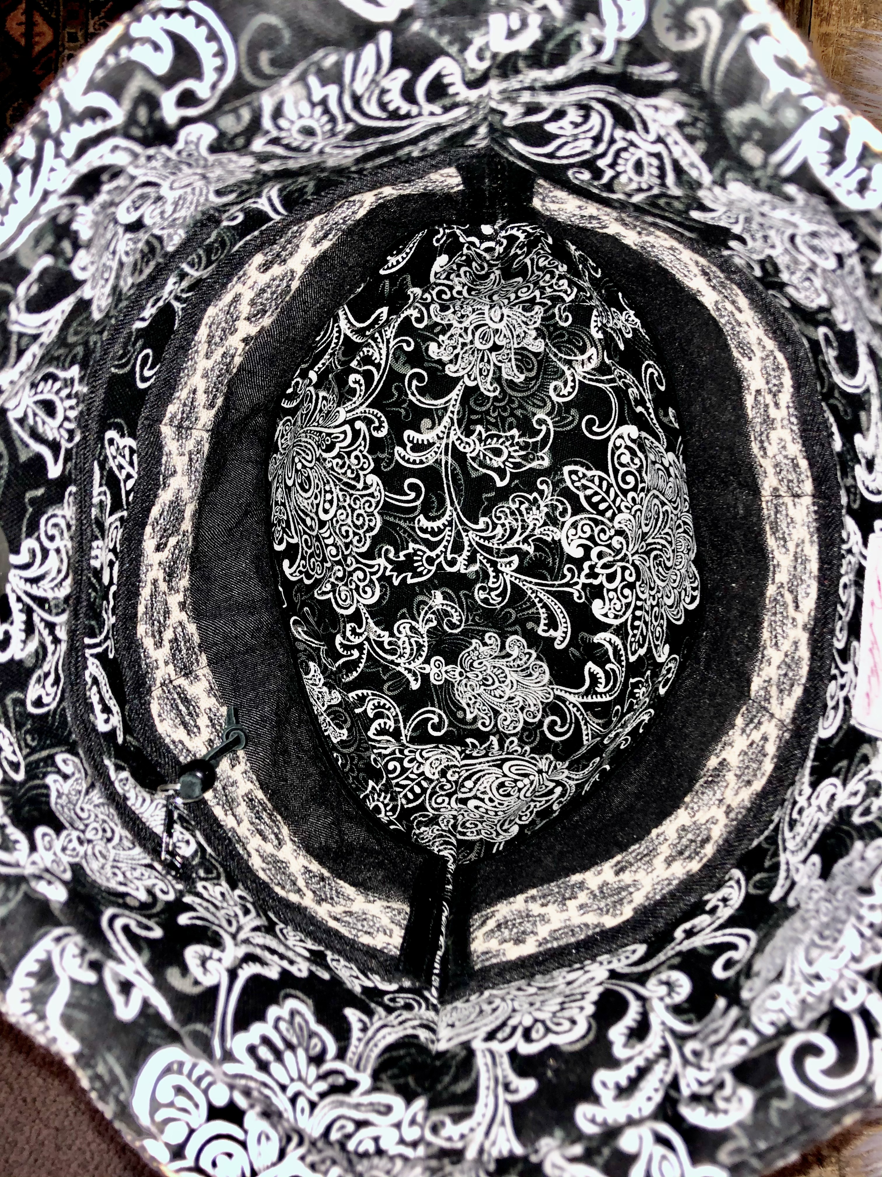 D’Elegance This is a 12″ x 12″ x 5″ Drawstring/Shoulder Bag with a 31″ strap, purse feet, triple slip pockets in back, elegant rhinestone panel in front, 6 interior slip pockets and a zip pocket as well. $72 D’Elegance (front) D’Elegance (interior) Share this:Tweet