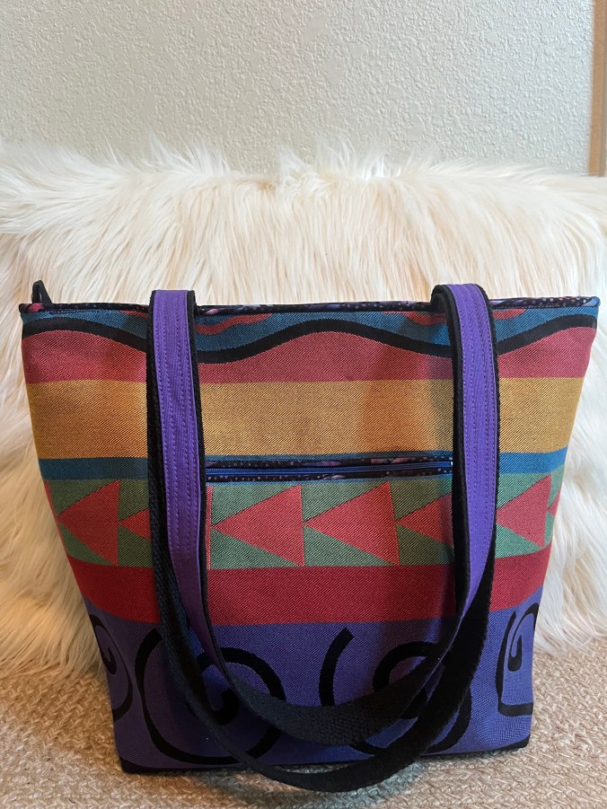 Fair Day This is a 15” X 12” X 5” Tote with 28” straps, a zip closure, a large front slip pocket, a back zip pocket, purse feet, 6 interior slip pockets as well as a zip pocket. $64 Fair Day (front) Fair Day (interior) Fair Day (back) Share this:Tweet