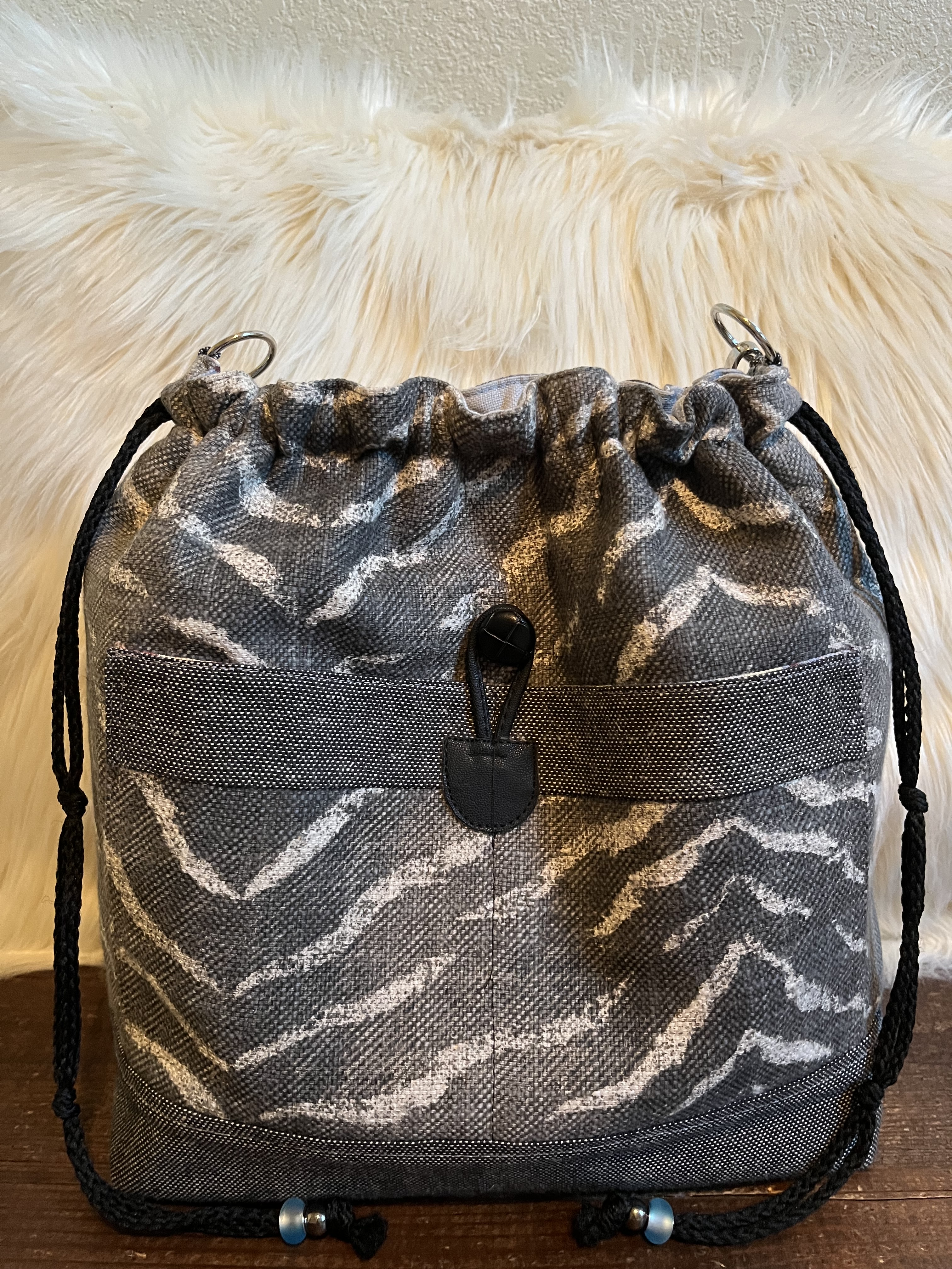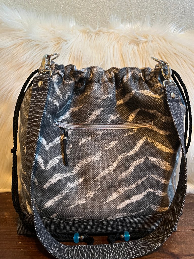 Garden Safari This is a 14″ x 13″ x 5″ Drawstring/snap closure, Shoulder Handbag with a 32″ strap, front double slip pockets, a back zip pocket, purse feet, 6 interior slip pockets as well as a zip pocket’ $75 Garden Safari (front) Garden Safari (interior) Garden Safari (back) Share this:Tweet