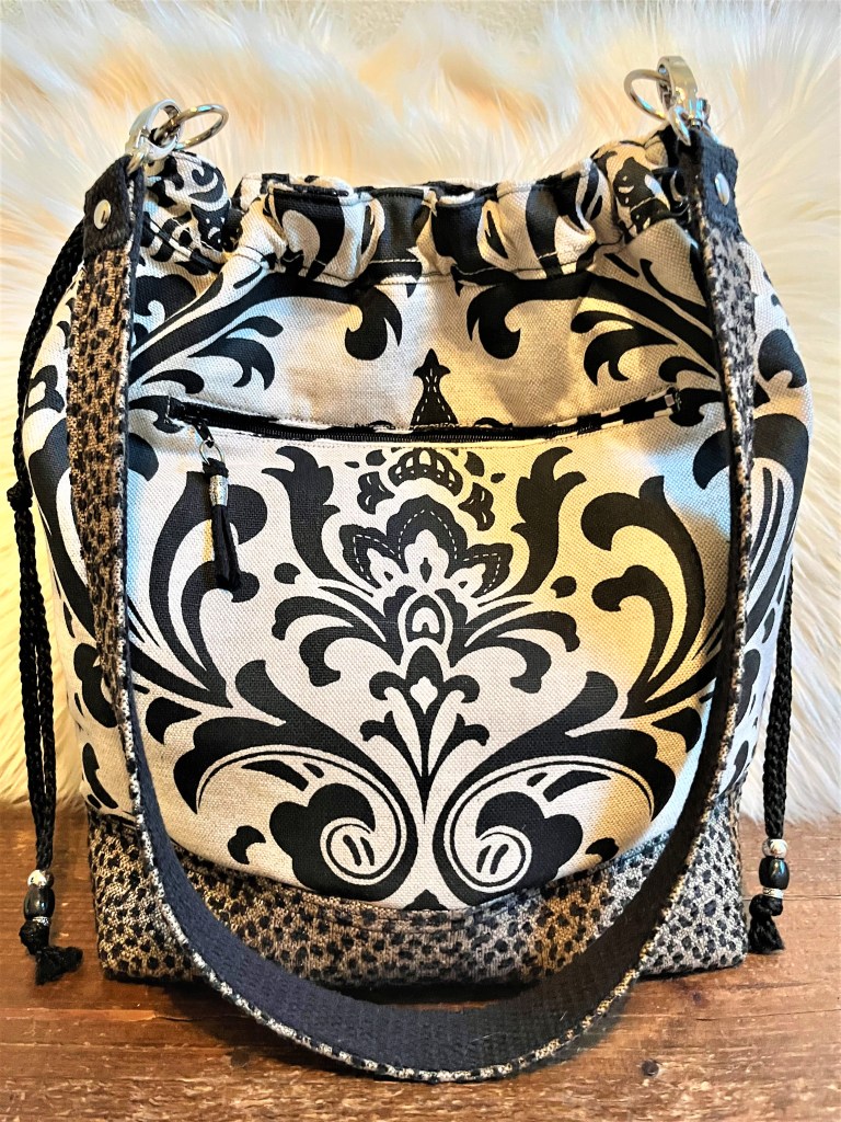 Grace This is a 16″ x 14″ x 5″ Shoulder Handbag with a 32″ strap, purse feet, 3 front slip pockets, a back zip pocket, 7 interior slip pockets as well as a zip pocket. $74 Grace (front) Grace (interior) Grace (back) Share this:Tweet