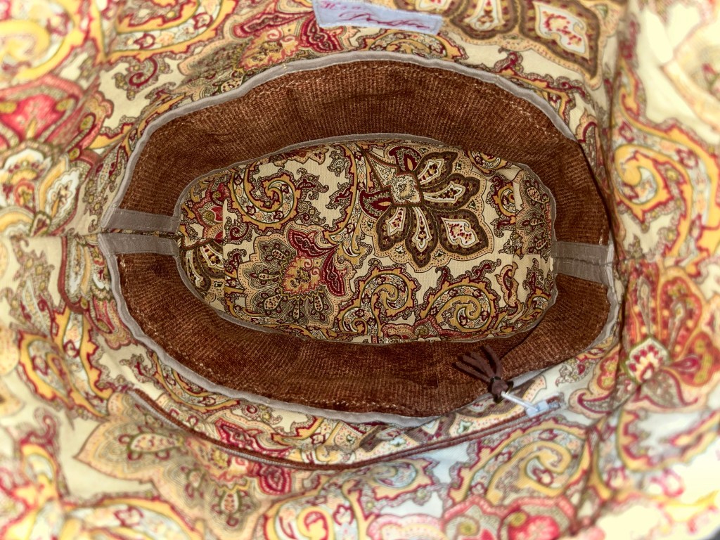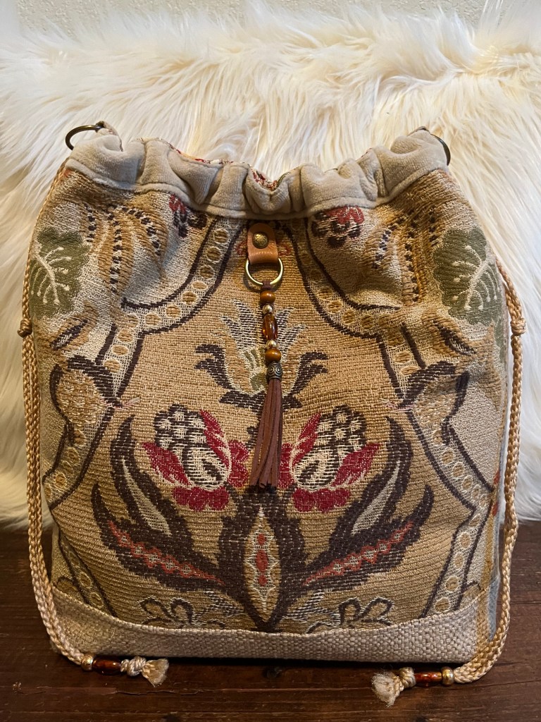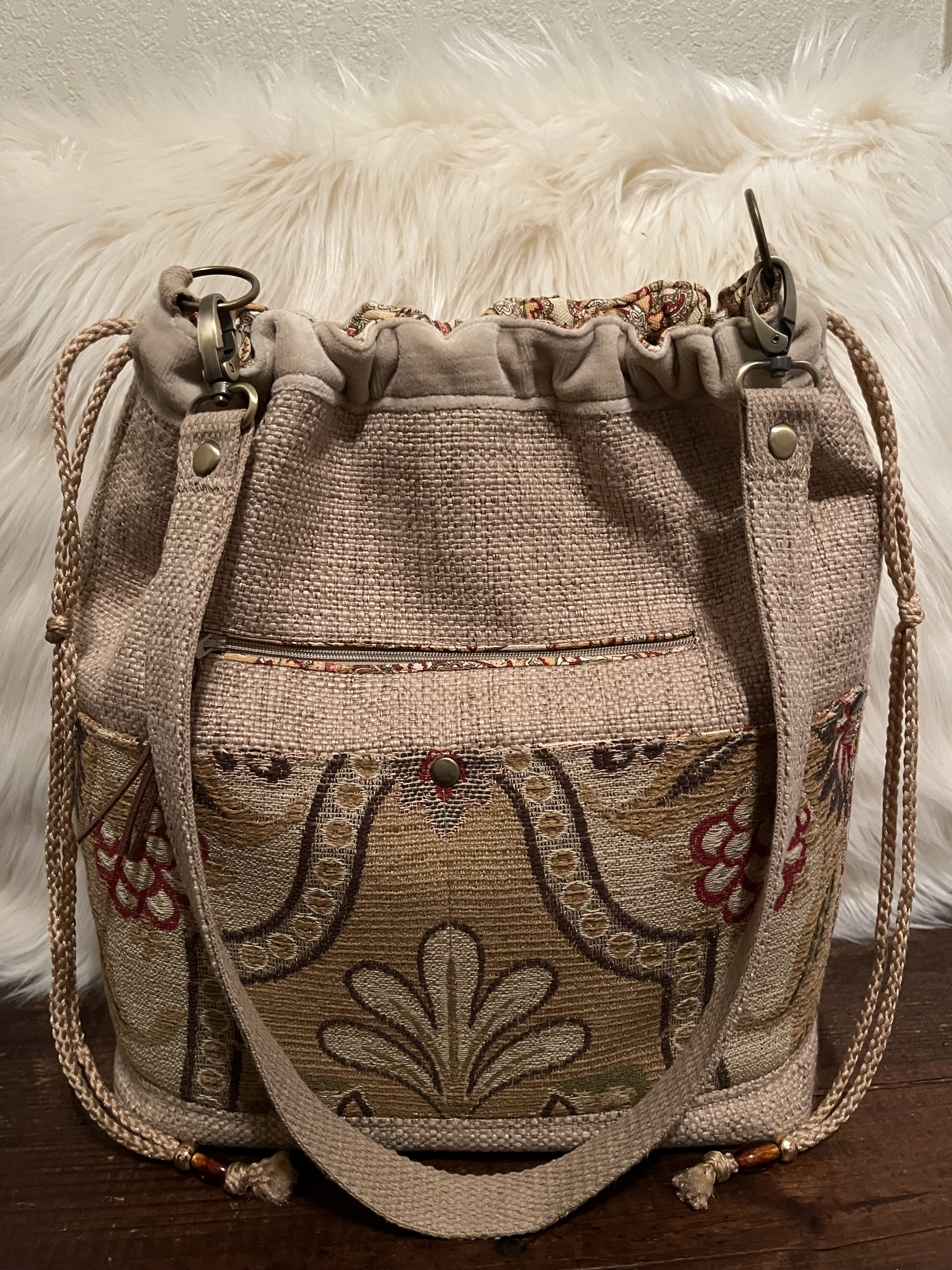 Headed South This is a 14″ x 13″ x 5″ draw/snap closure, shoulder handbag with a 31″ strap, a back zip pocket and 2 slip pockets, purse feet, 6 interior slip pockets as well as a zip pocket $75 Headed South (front) Headed South (interior) Headed South (back) Share this:Tweet