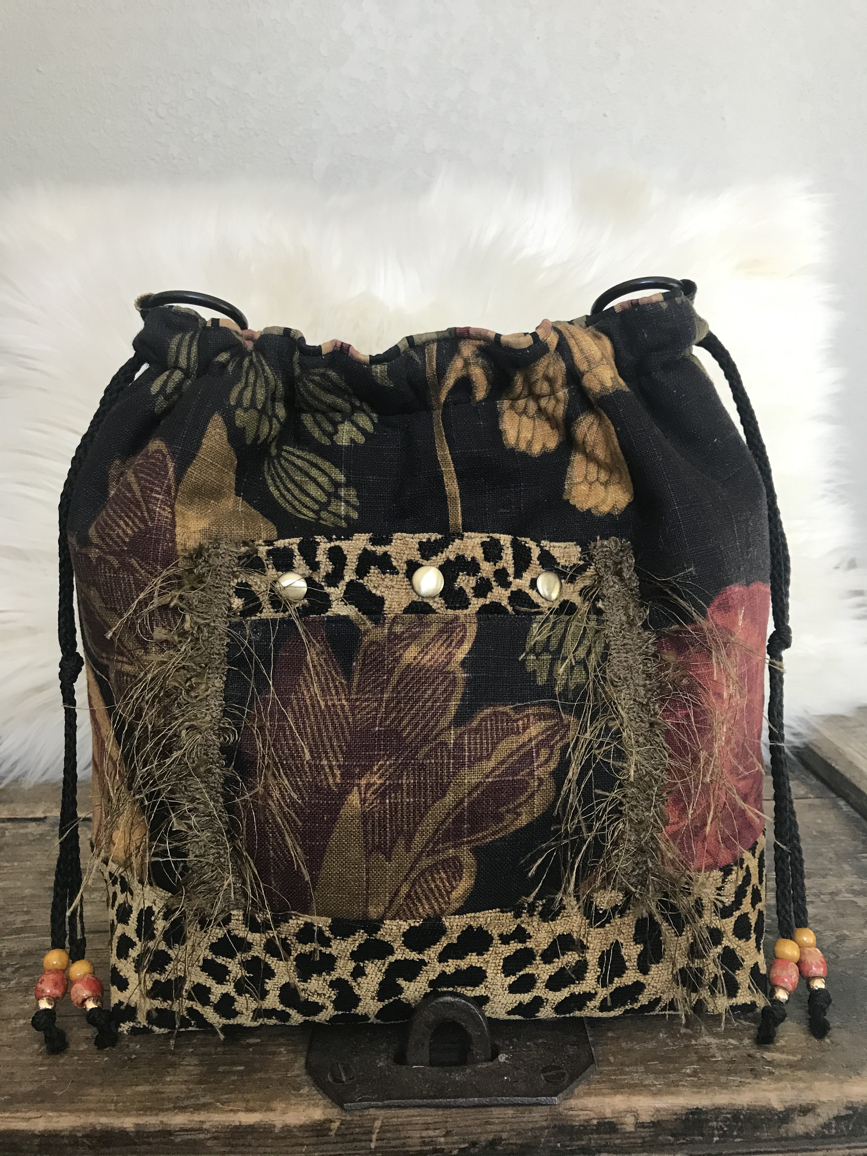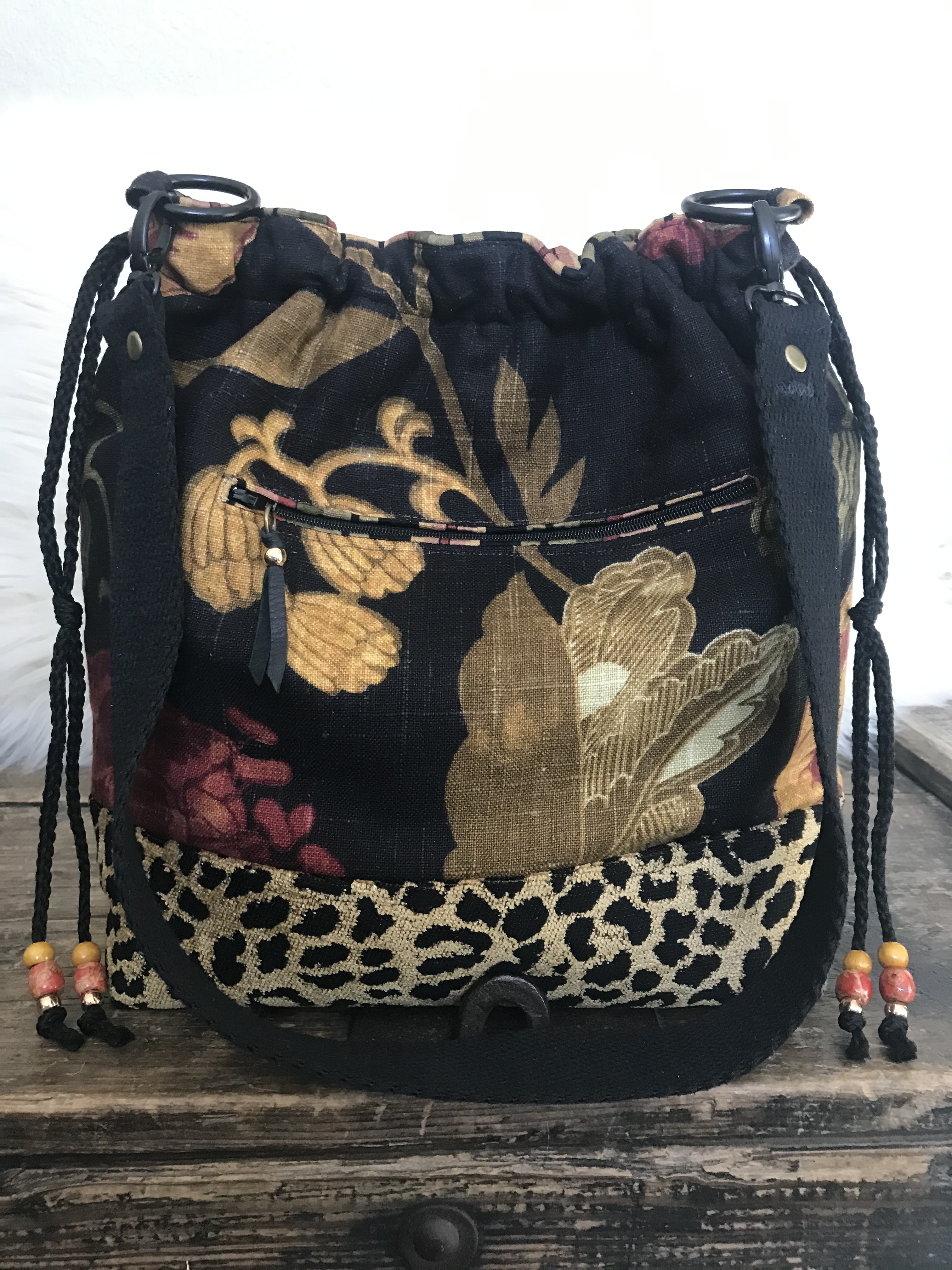 Hot Toddy This is a 13″ x 12″ x 4″ Drawstring/Shoulder Bag with a 32″ strap, a front I-phone slip pocket, a back zip pocket, 6 interior slip pockets as well as purse feet and an interior zip pocket. $72 Hot Toddy (front) Hot Toddy (interior) Hot Toddy (back) Share this:Tweet