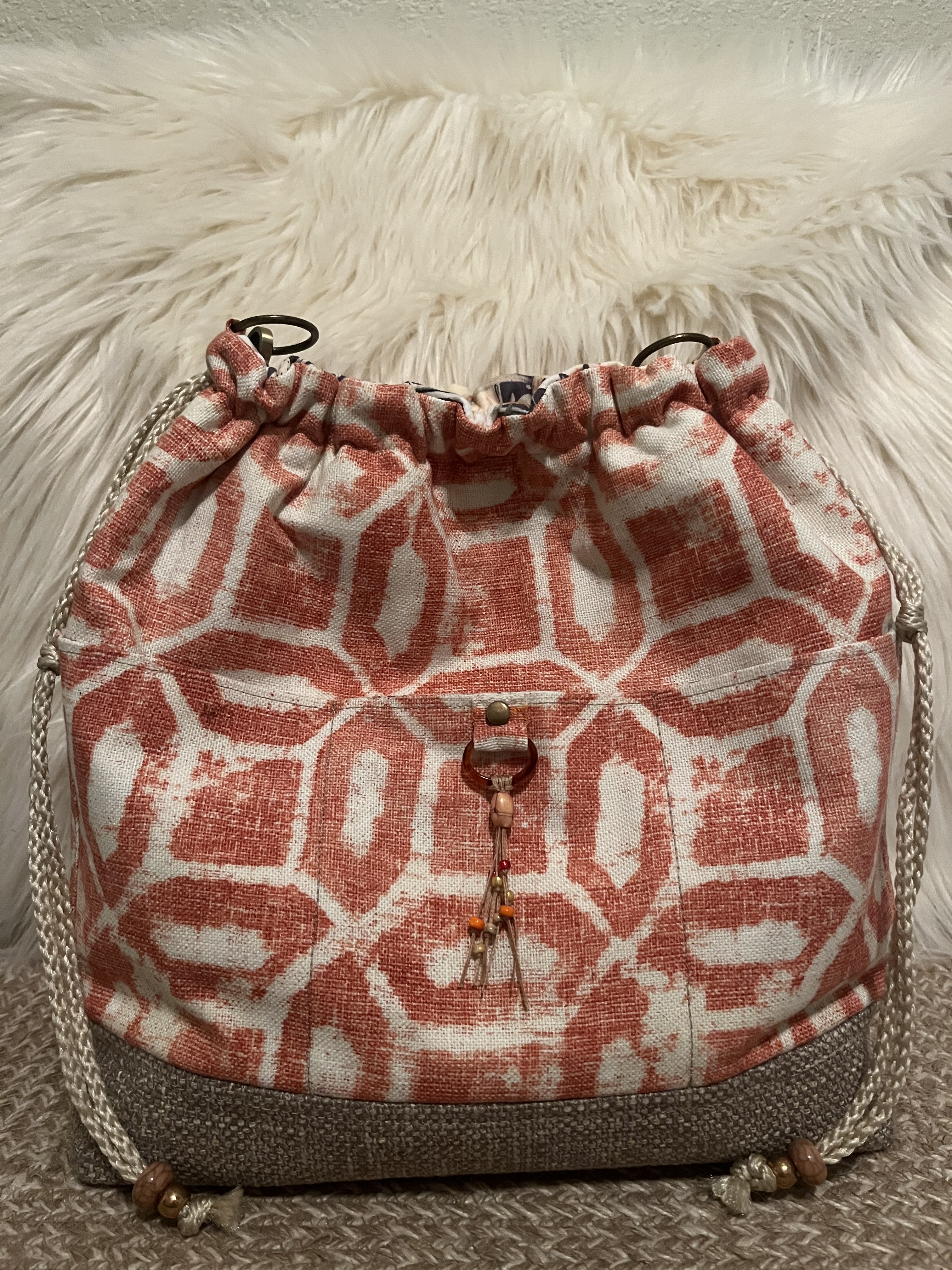 Kaleidoscope Garden This is a 13” x 13” x 5” Shoulder Handbag with a draw/snap closure, a 33“ strap, 3 front slip pockets, a back zip pocket, 6 interior slip pockets, a zip pocket and purse feet. $74 Kaleidoscope Garden (front) Kaleidoscope Garden (interior) Kaleidoscope Garden (back) Share this:Tweet