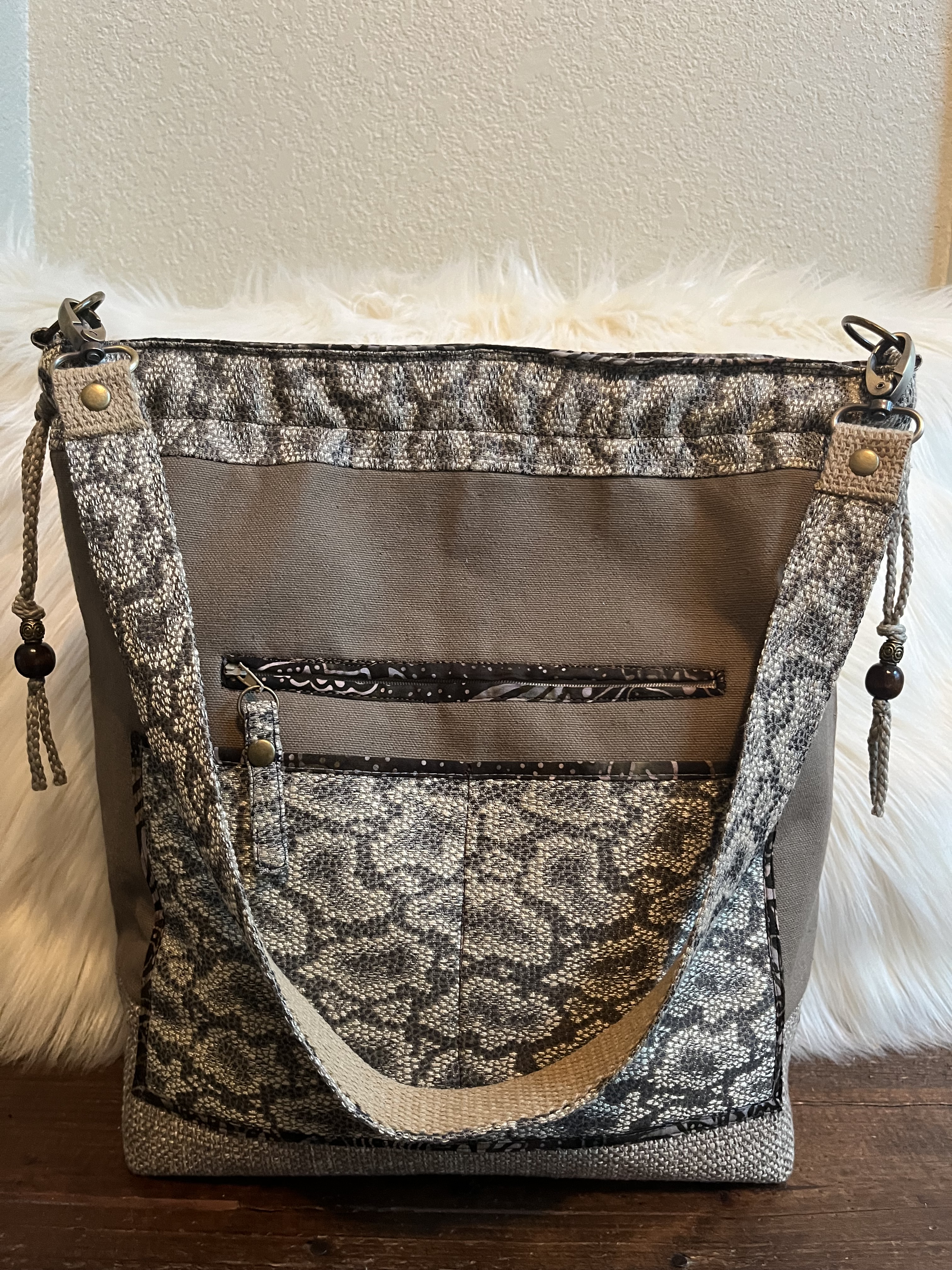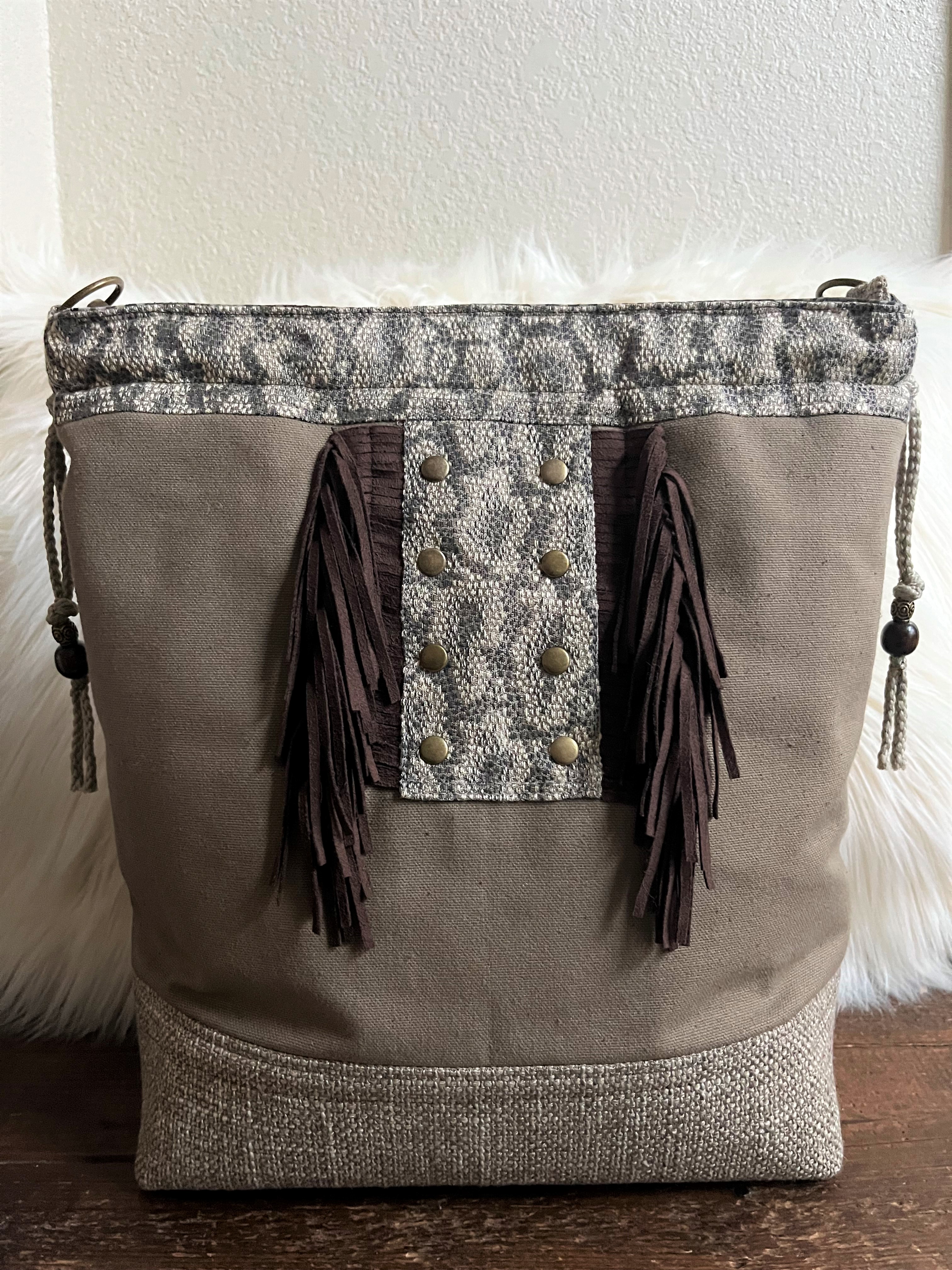 Kinda Kountry This is a 13″ x 13″ x 5″ Shoulder Bag with a 31″ strap, a zipper close, a back zip pocket and 2 back slip pockets, 6 interior slip pockets as well as a zip pocket. $74 Kinda Kountry (front) Kinda Kountry (interior) Kinda Kountry (back) Share this:Tweet