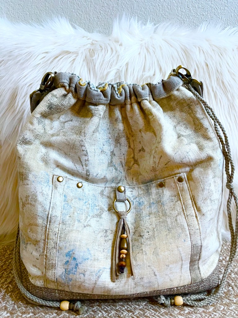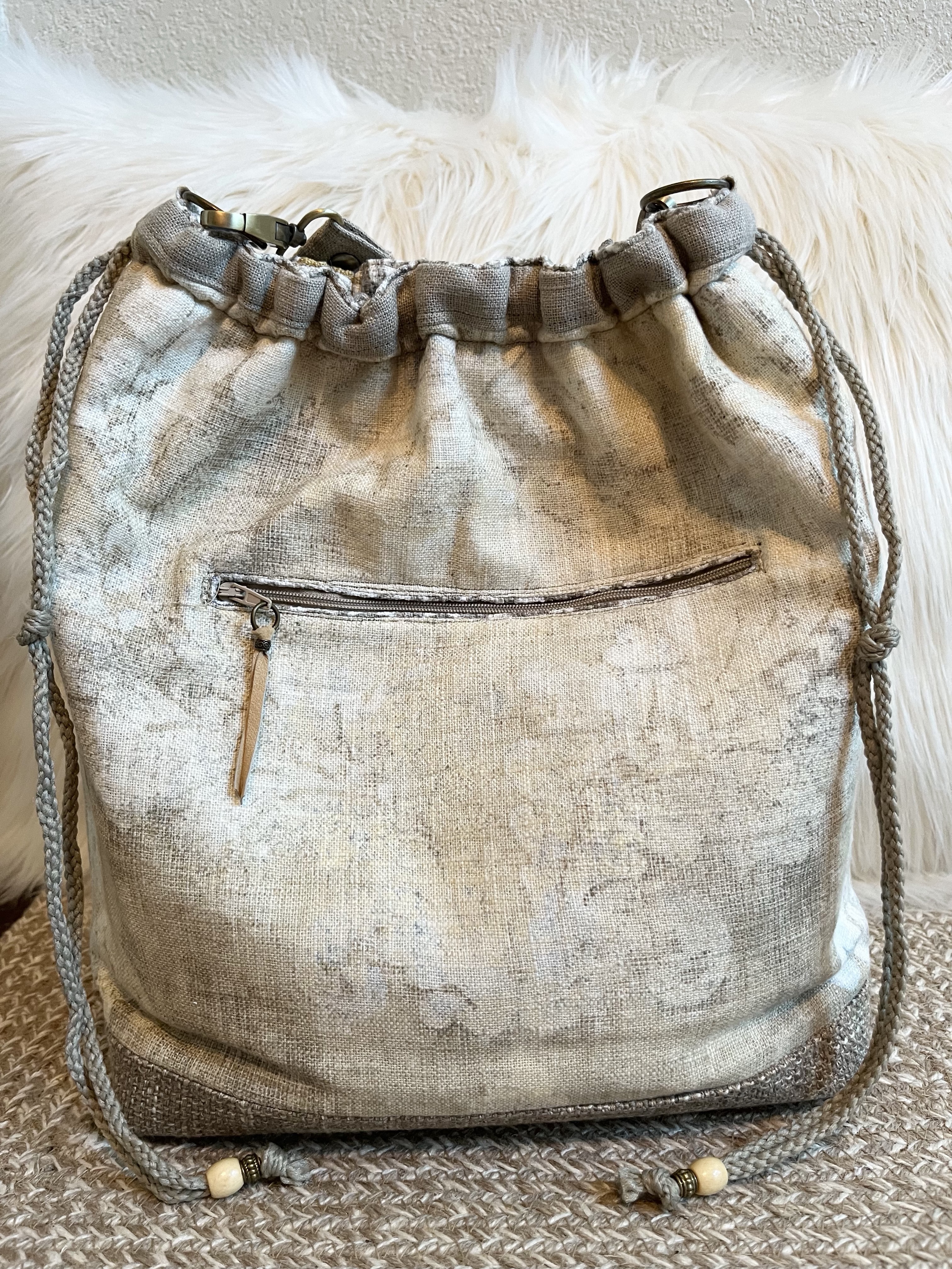 Linen Luxe This is a 13” x 13” x 5” Draw/snap closure, shoulder handbag with a 31” strap, purse feet, front slip pocket, a back zip pocket, 6 interior slip pockets as well as a zip pocket $65 Linen Luxe Linen Luxe Linen Luxe Share this:Tweet