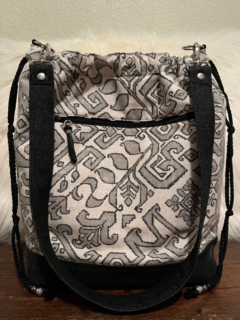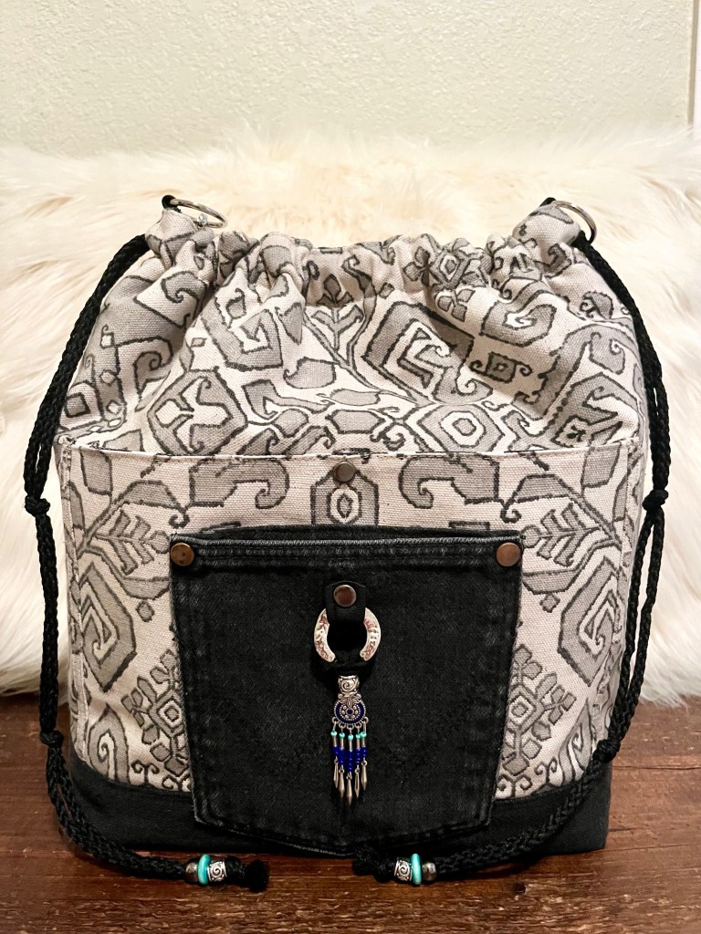 Little Charmer This is a 13” x 13” x 5” Draw/snap closure, Shoulder Handbag with a 32” strap, purse feet, 3 front slip pockets, a back zip pocket, 6 interior slip pockets as well as a zip pocket. $76 Little Charmer (front) Little Charmer (interior) Little Charmer (back) Share this:Tweet