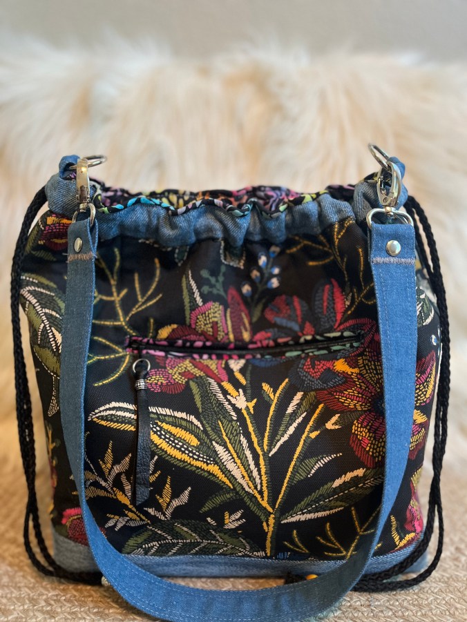 Lucky You This is a 14″ x 12″ x 5″ Snap/draw closure Shoulder Handbag with purse feet, 2 front slip pockets, a back zip pocket, 6 interior slip pockets as well as a zip pocket. $74 Lucky You (front) Lucky You (interior) Lucky You (back) Share this:Tweet