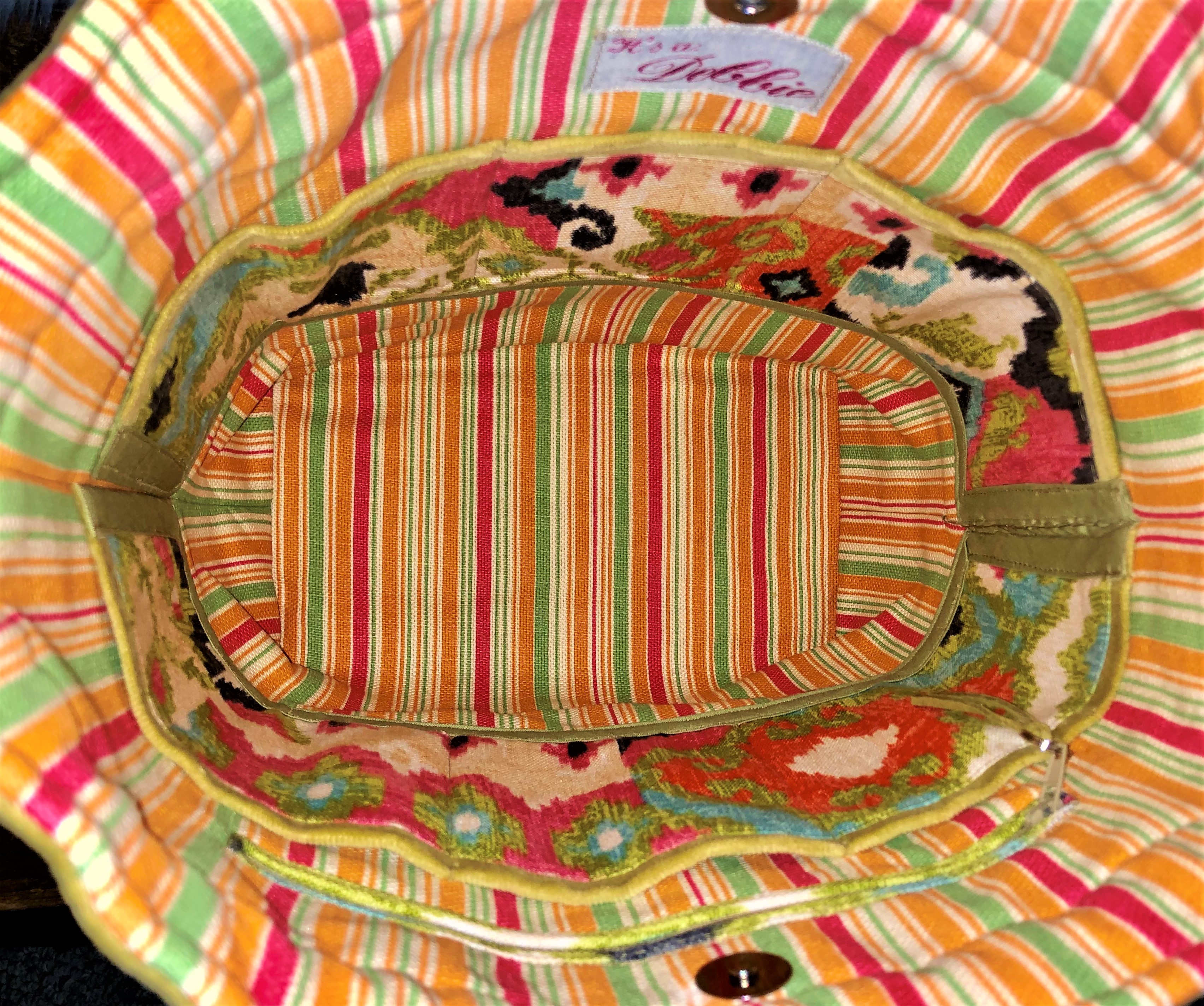 Mardi Gra Gear This is a 13″ x 12″ x 4″ Drawstring/Shoulder Bag with a 32″ strap, a front I-phone slip pocket, a back zip pocket, an added key Fob, purse feet, 6 interior slip pockets as well as a zip pocket. $72 Mardi Gras Gear (front) Mardi Gras Gear (front) Mardi Gras Gear (back) Share this:Tweet