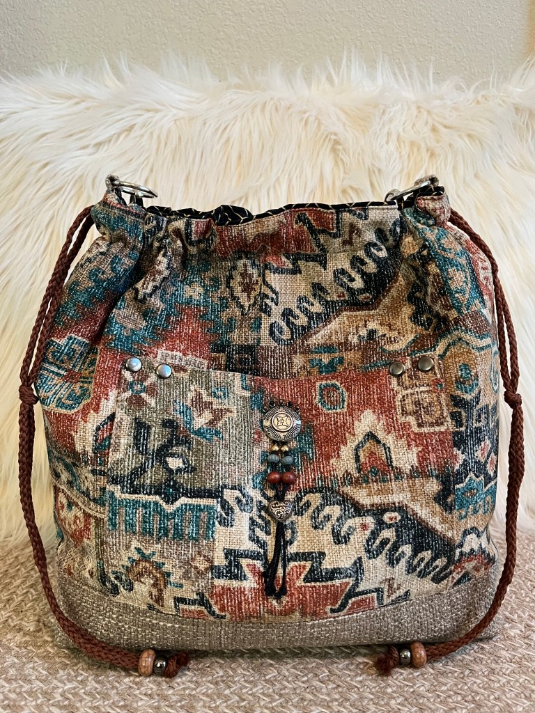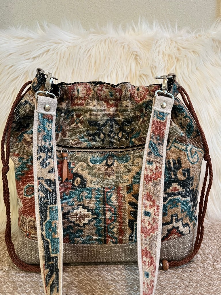 Montana This is a 13.5″ x 13″ x 6″ Draw/snap closure Handbag with a 28″ strap, purse feet, a front slip pocket, a back zip pocket, 6 interior slip pockets as well as a zip pocket. $78 Montana (front) Montana (interior) Montana (back) Share this:Tweet