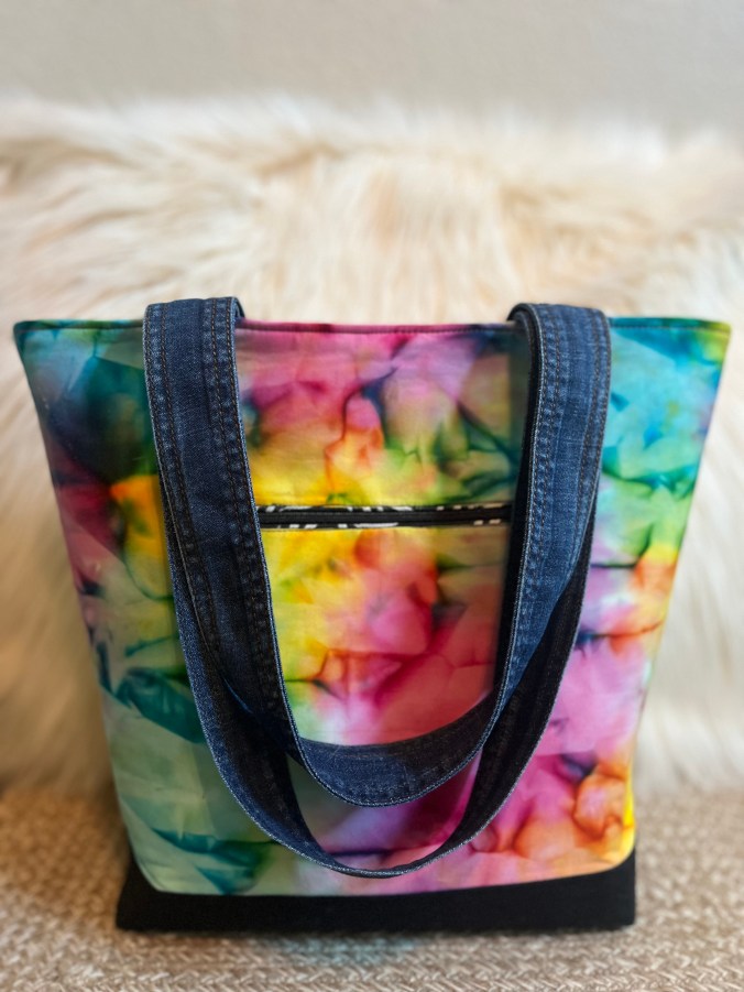 Off To Pre-School This is a 14″ x 11″ x 5″ Tote with 2 front slip pockets, snap close, back zip pocket, 6 interior slip pockets as well as a zip pocket $70 Off To Pre-School (front) Off To Pre-School (interior) Off To Pre-School (back) Share this:Tweet