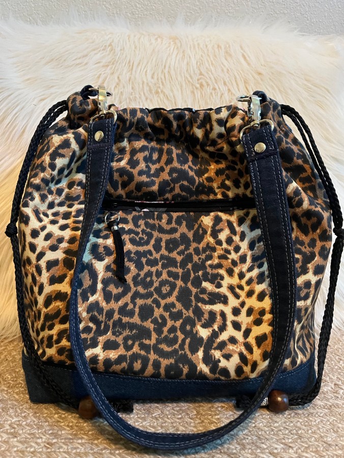 Outta Pocket This is a 14″ x 12″ x 5″ snap/draw closure, shoulder handbag with a 28″ strap, purse feet, front double slip pockets, a back zip pocket, 6 interior slip pockets as well as a zip pocket $75 Outta Pocket (front) Outta Pocket (interior) Outta Pocket (back) Share this:Tweet