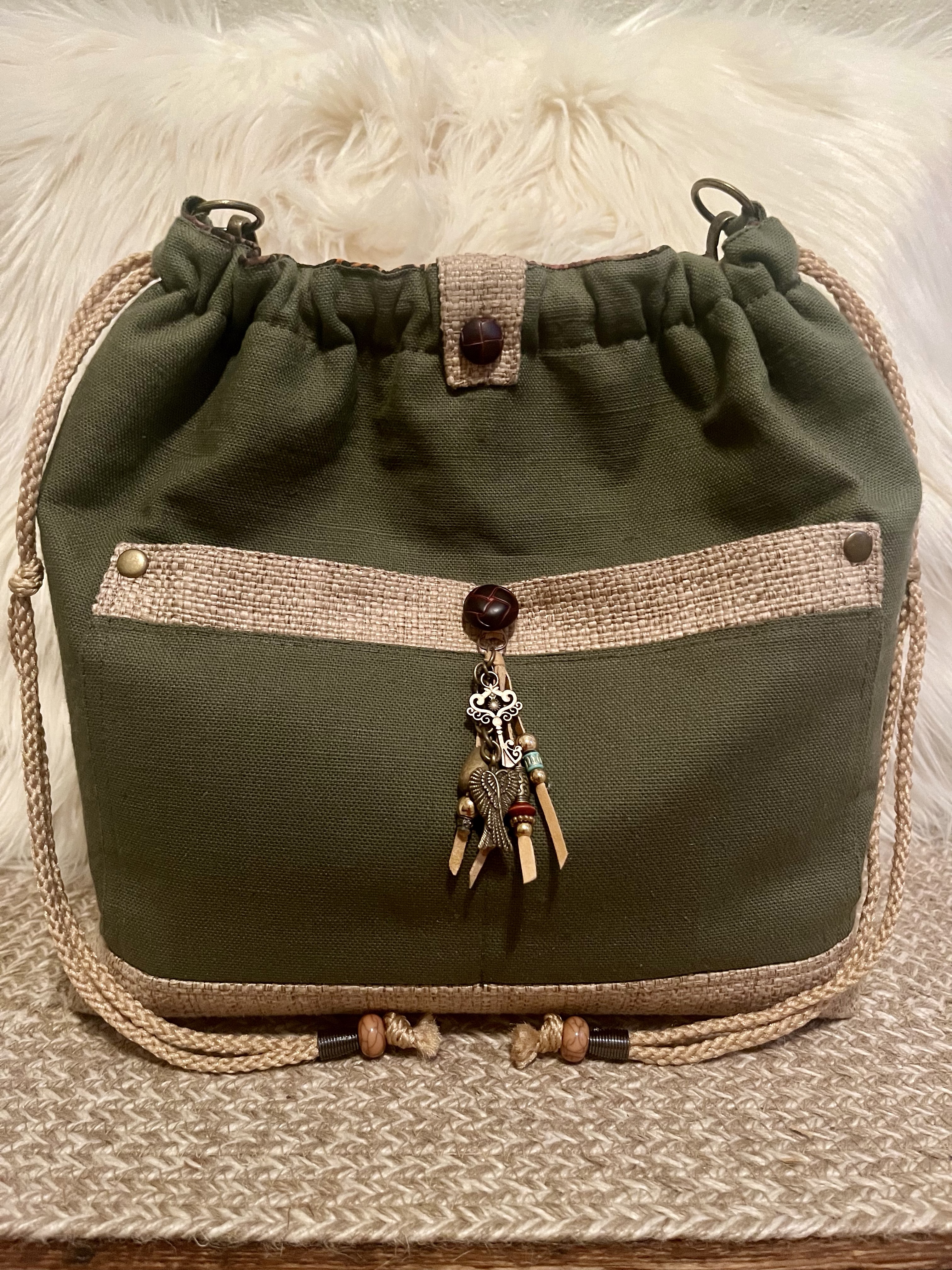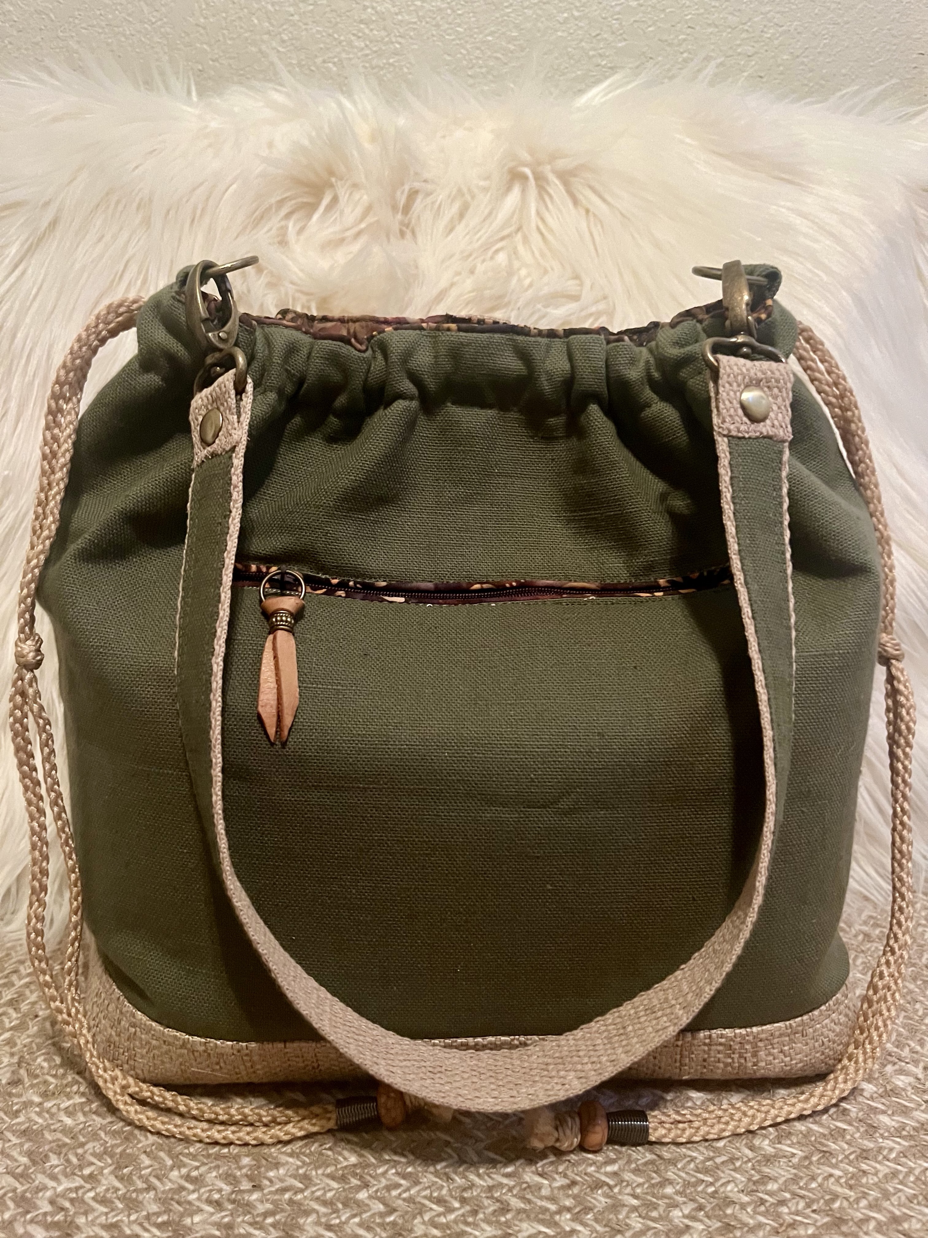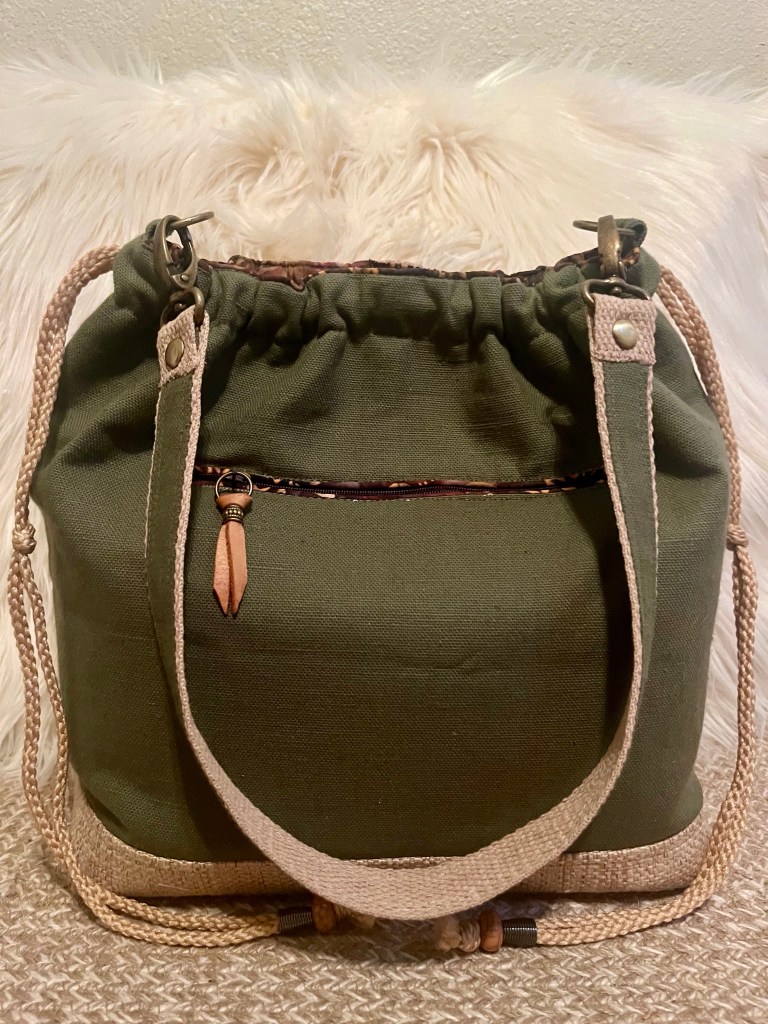 Part – Time This is a 14” X 12” X 5” Snap/Draw closure, Shoulder Handbag with a 26” strap, double front slip pockets, a back zip pocket, 6 interior slip pockets as well as a zip pocket. $72 Part – Time (front) Part – Time (interior) Part – Time (back) Share this:Tweet