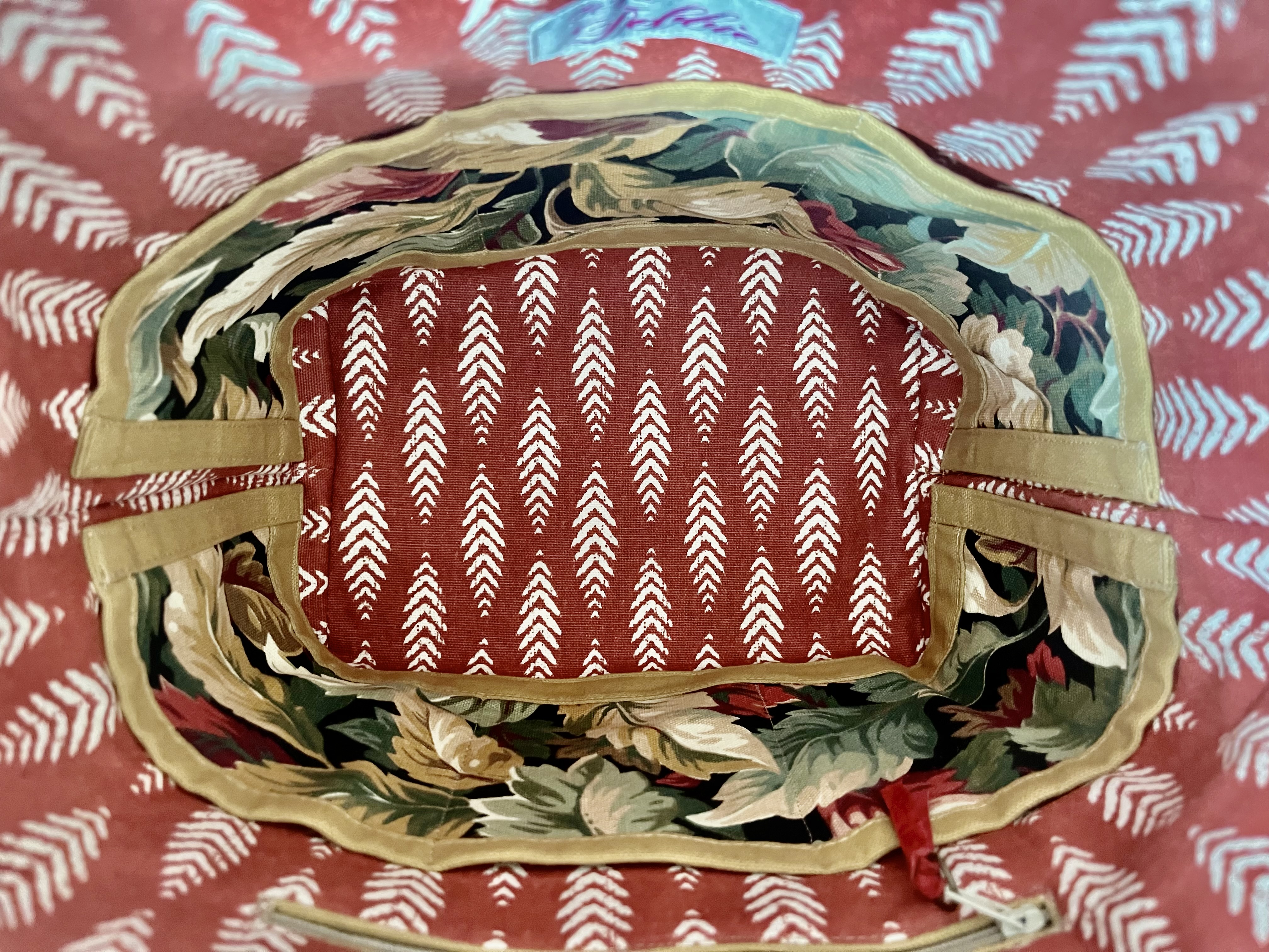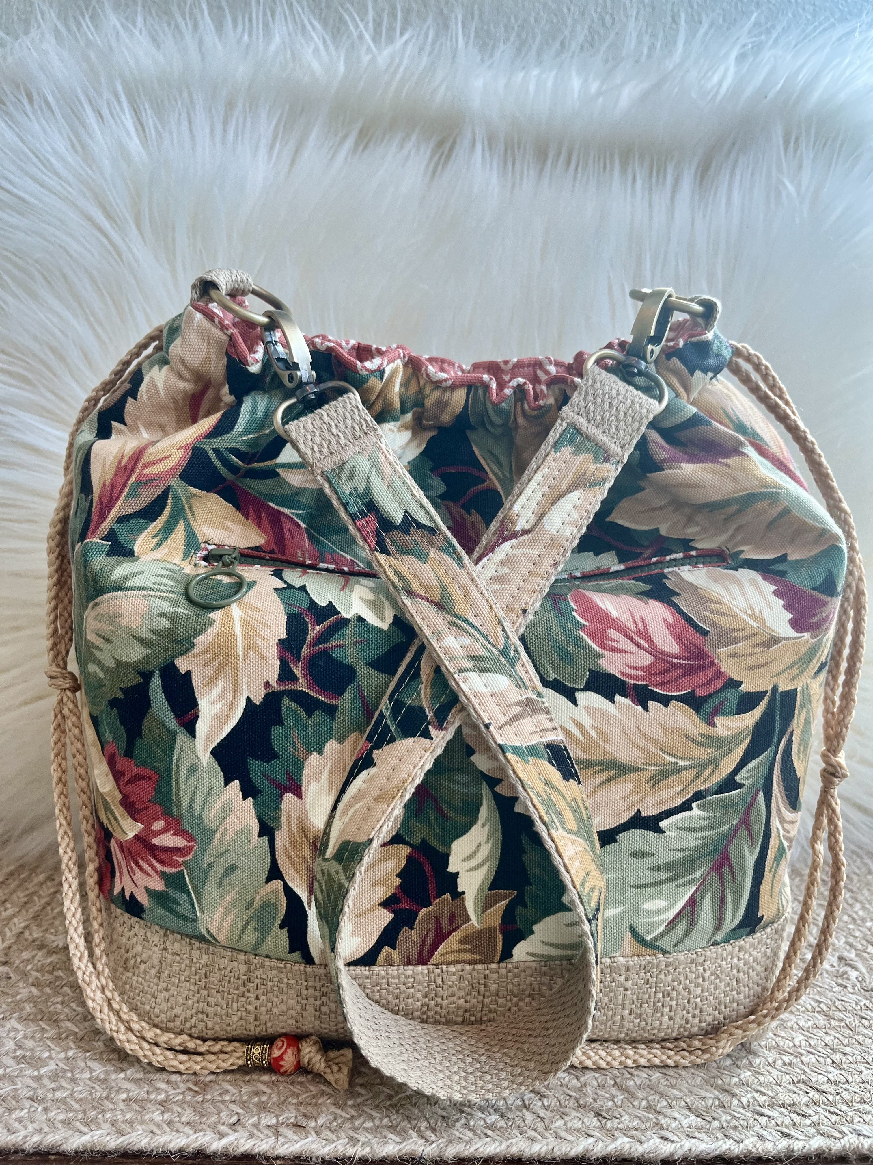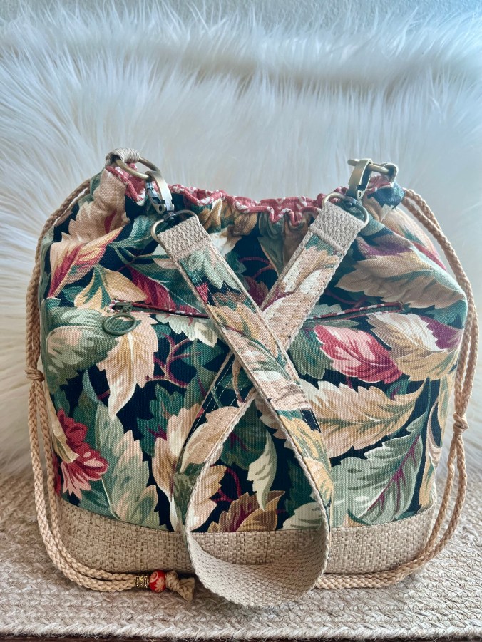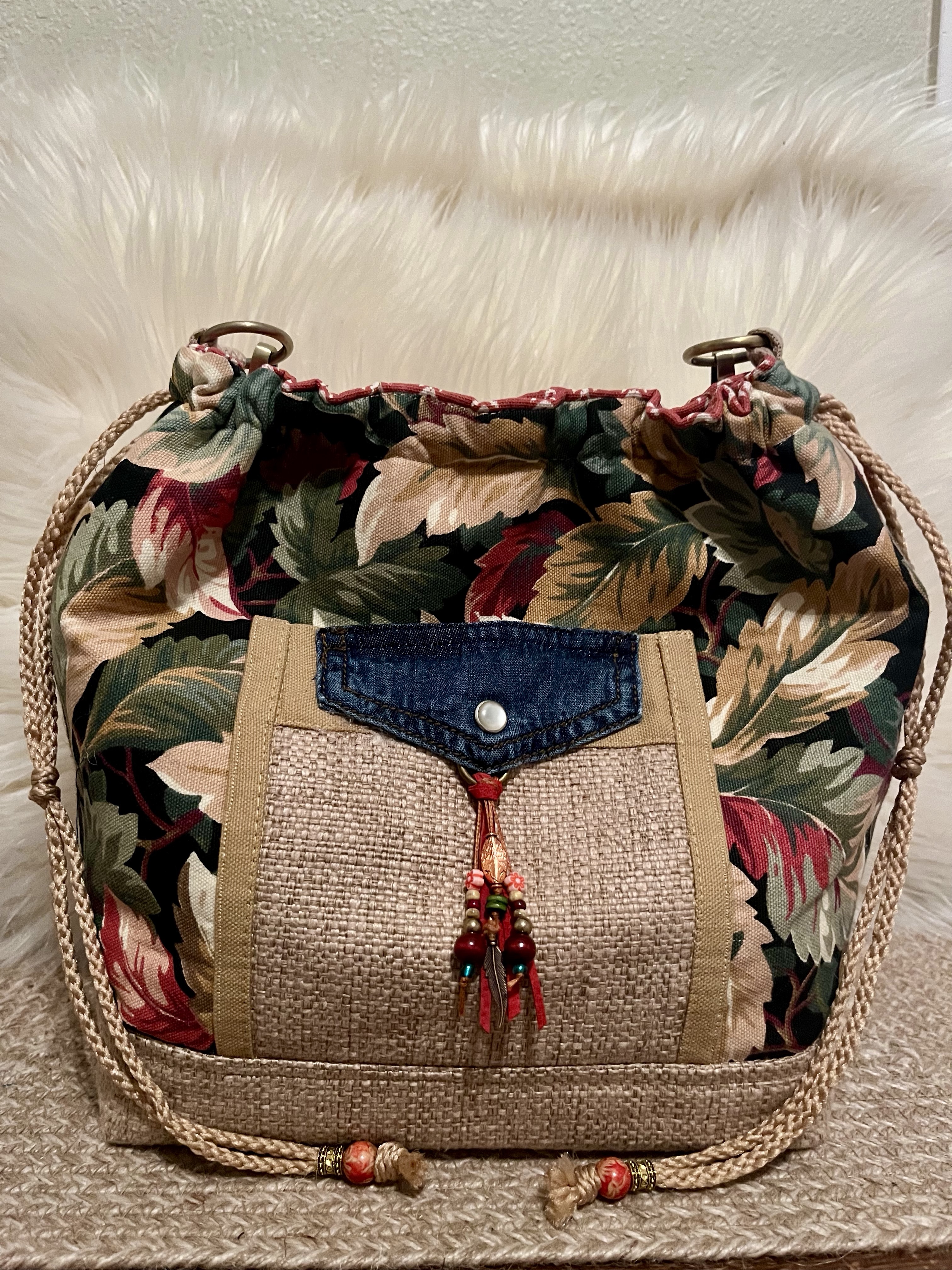 Please Leaf This is a 14″ x 12″ x 5″ Draw/snap closure, shoulder Handbag with a 30″ strap. a front slip pocket, a back zip pocket, 6 interior slip pockets as well as a zip pocket. $Add cost here Please Leaf (front) Please Leaf (interior) Please Leaf (back) Share this:Tweet