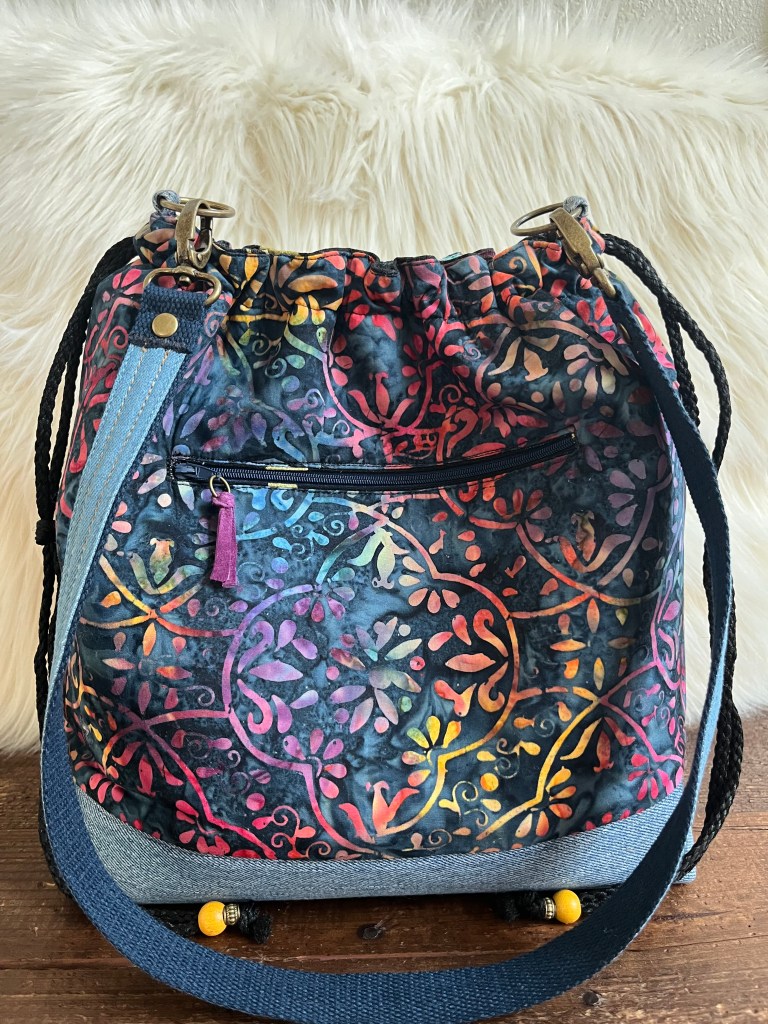 Pocket a Blessing This is a 14″ x 13″ x 5″ Shoulder handbag with a Snap/draw Closure, 31″ strap, 2 front Slip pockets, a back zip pocket, purse feet, 6 interior slip pockets as well as a zip pocket. $74 Pocket a Blessing (front) Pocket a Blessing (interior) Pocket a Blessing (back) Share this:Tweet