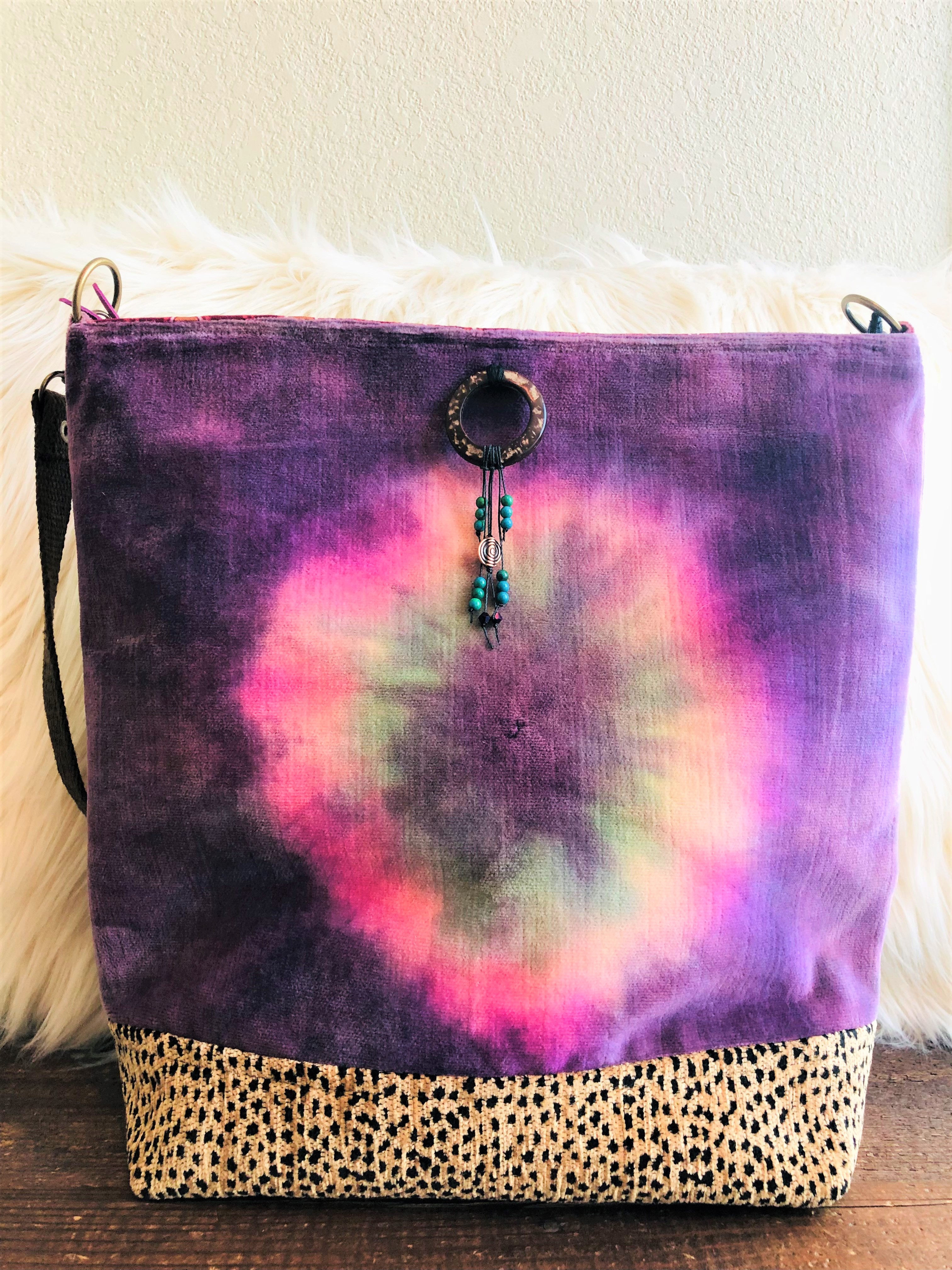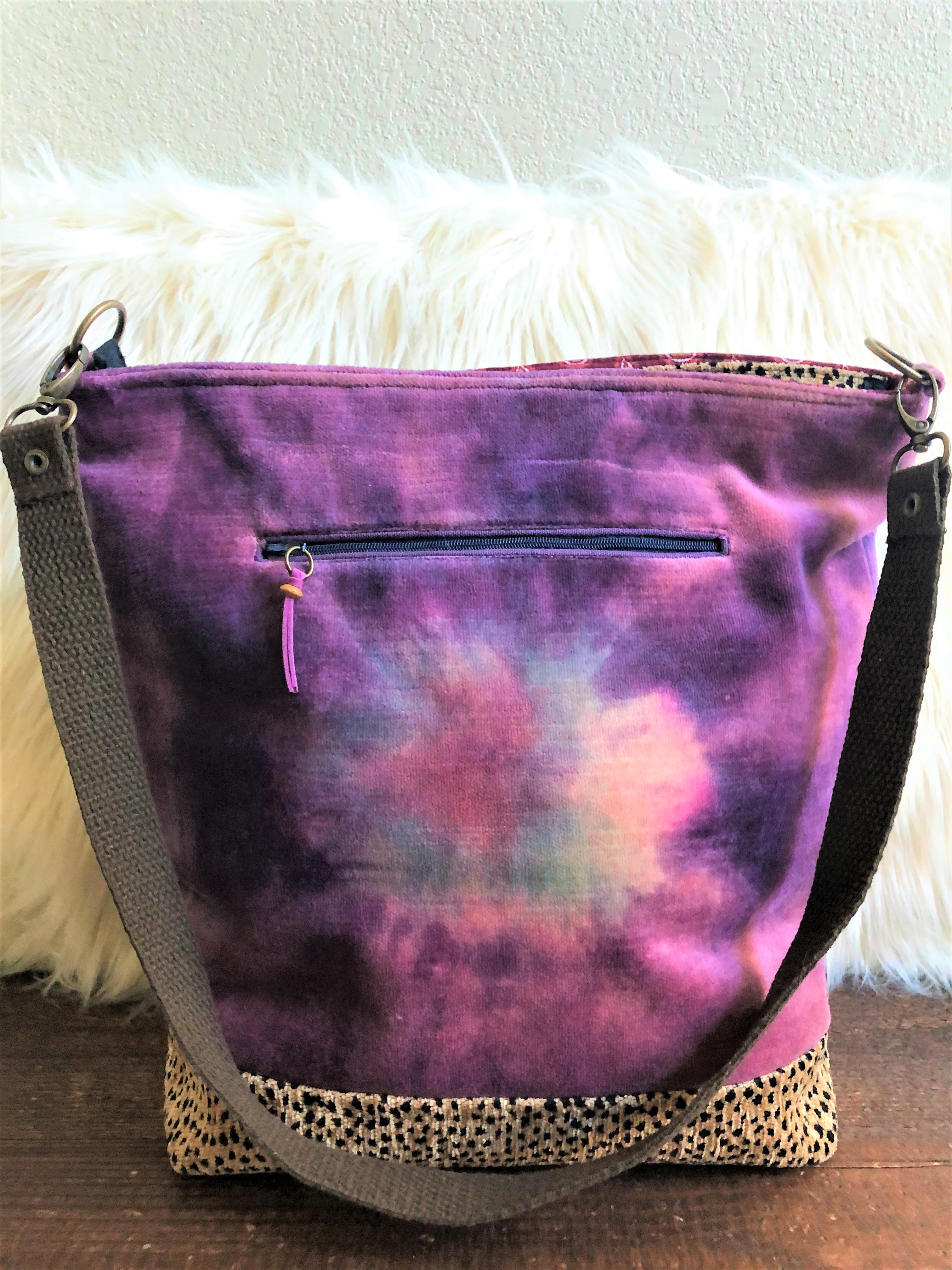 Purple Colada This is a 13″ x 13″ x 5″ Tie dyed Velvet Shoulder Handbag with a 32″ strap, a back zip pocket, purse feet, 6 interior slip pockets, and a zip pocket as well. $74 Purple Colada (front) Purple Colada (interior) Purple Colada (back) Share this:Tweet