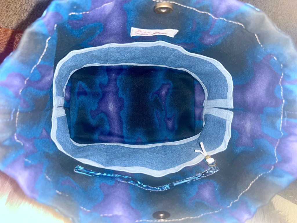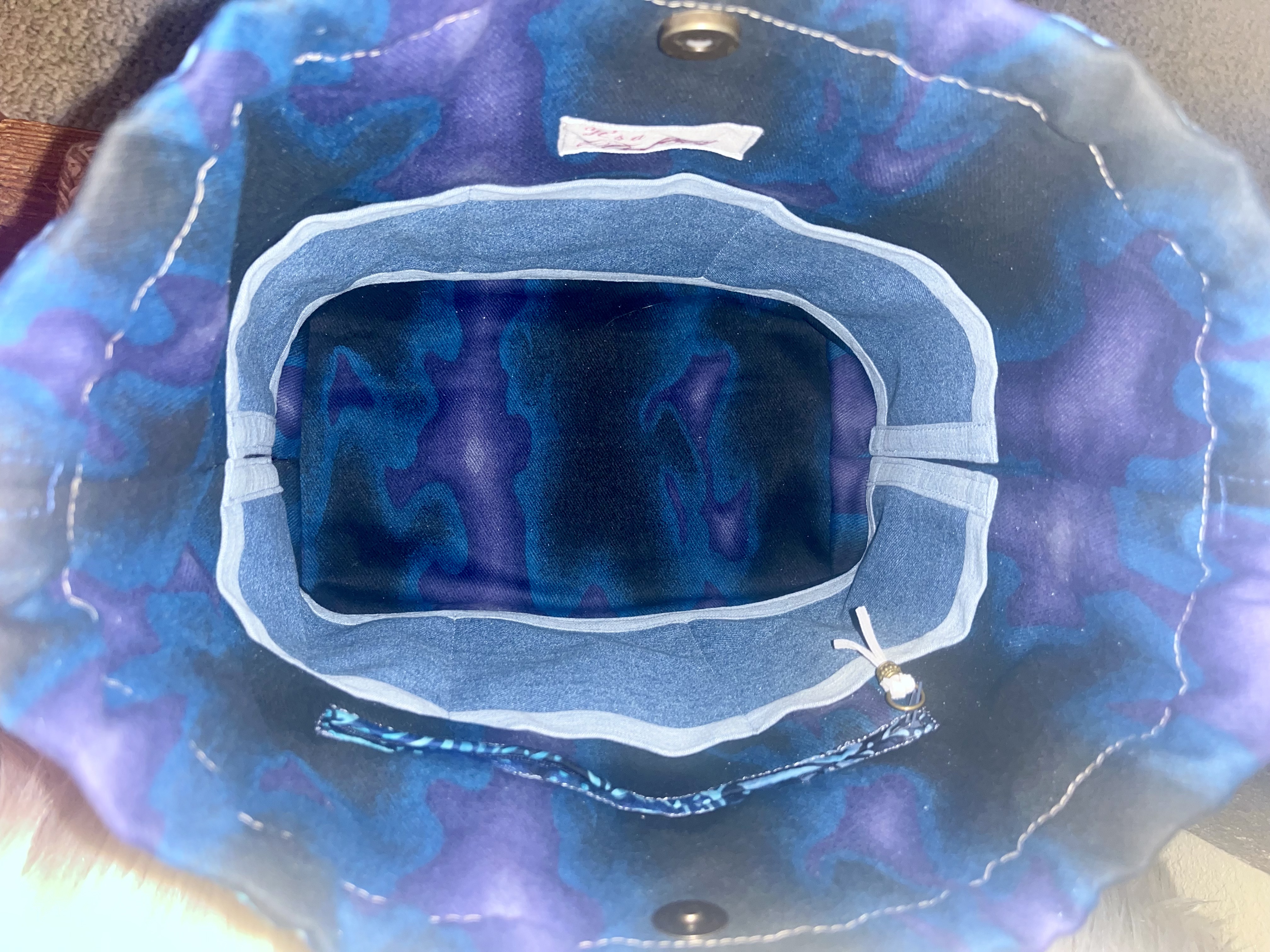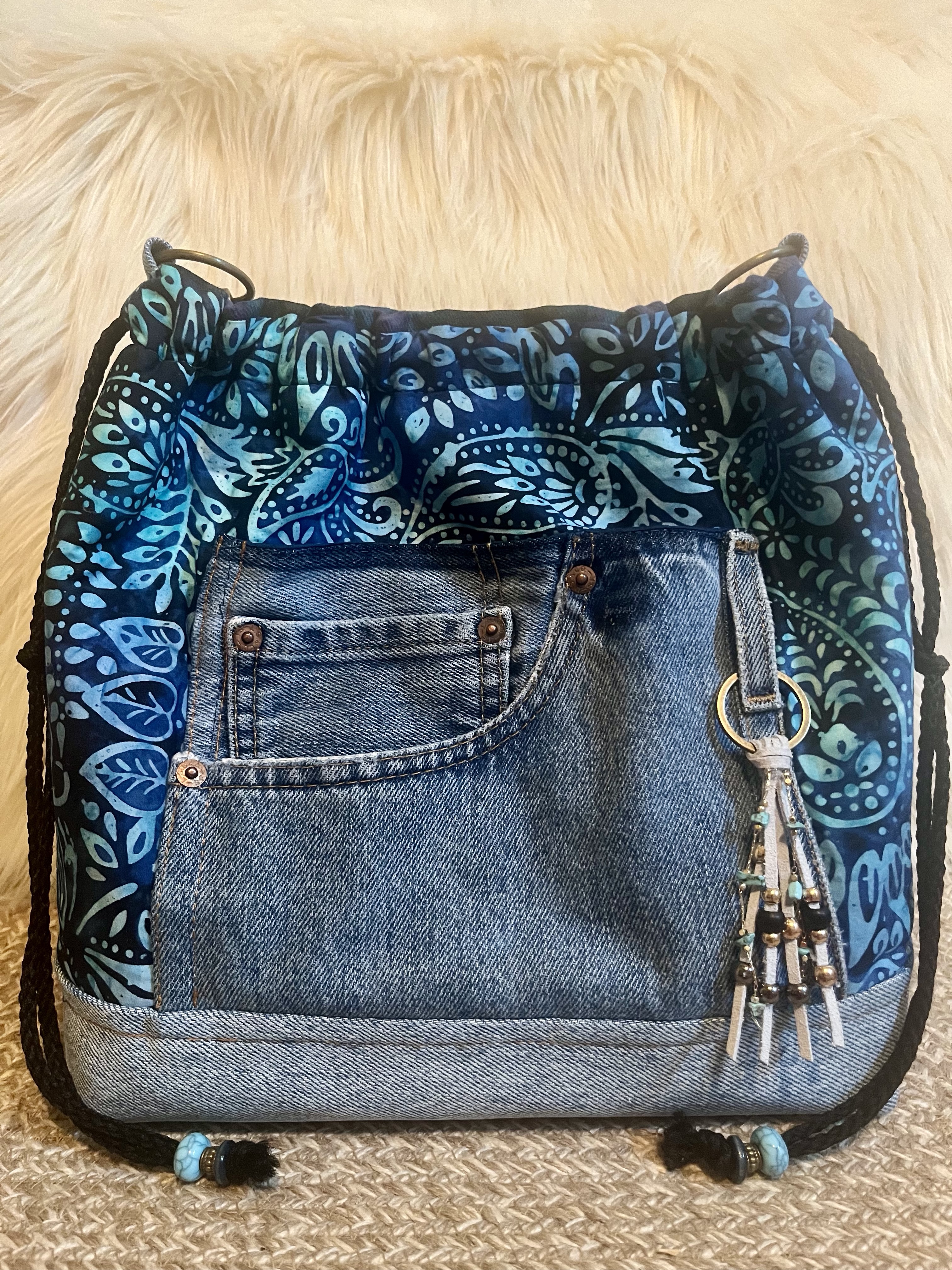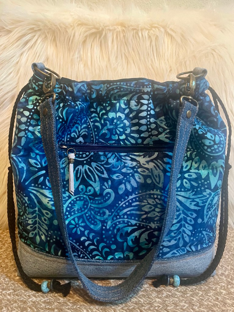 Ridin’ High This is a 14” X 12” X 5” Draw/snap Closure, with a 27” Shoulder Strap, A front Levi Pocket with the usable smaller pockets, a back zip pocket, purse feet, 6 interior slip pockets as well as a zip pocket. $ Ridin’ High (front) Ridin’ High (interior) Ridin’ High (back) Share this:Tweet
