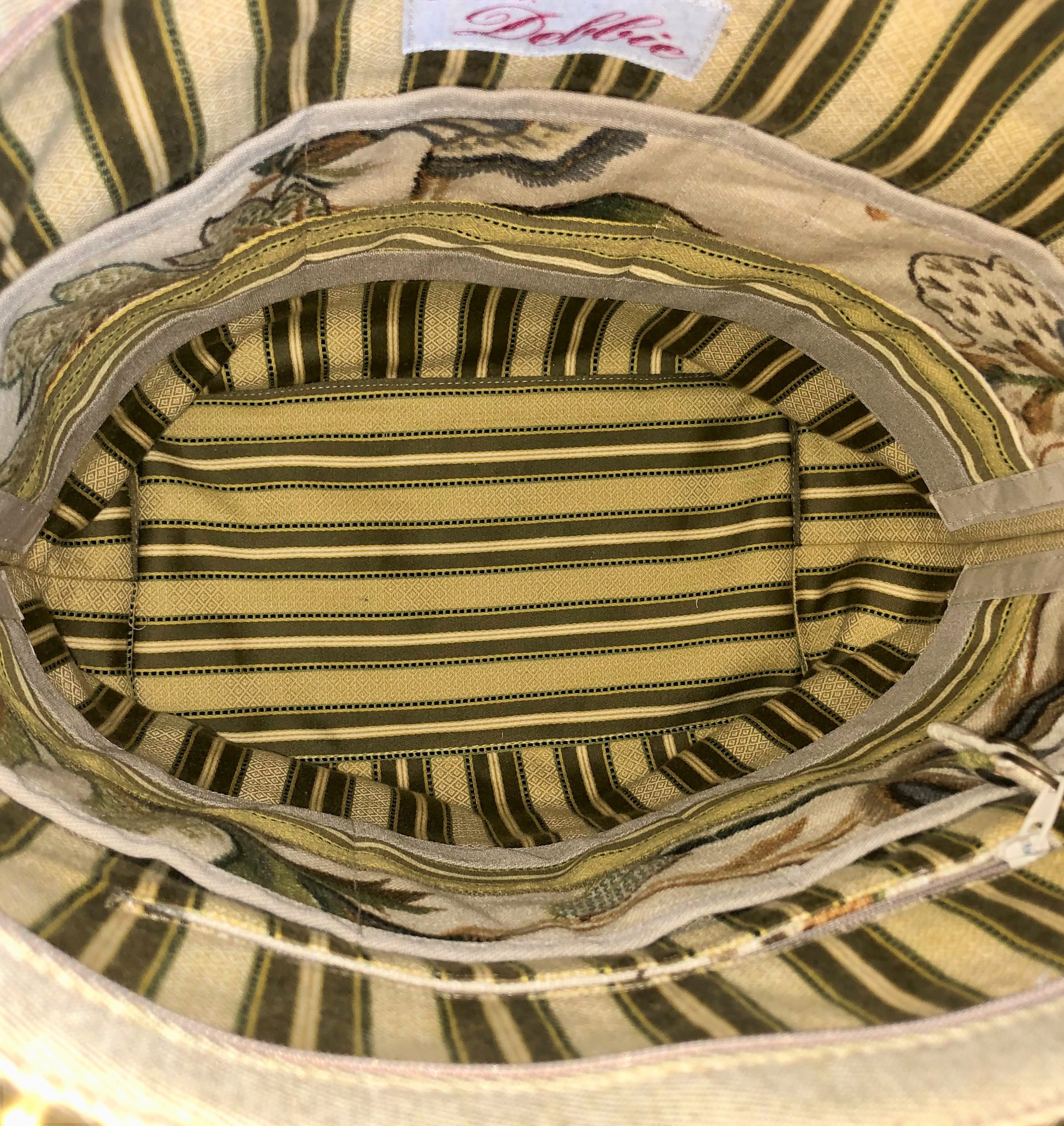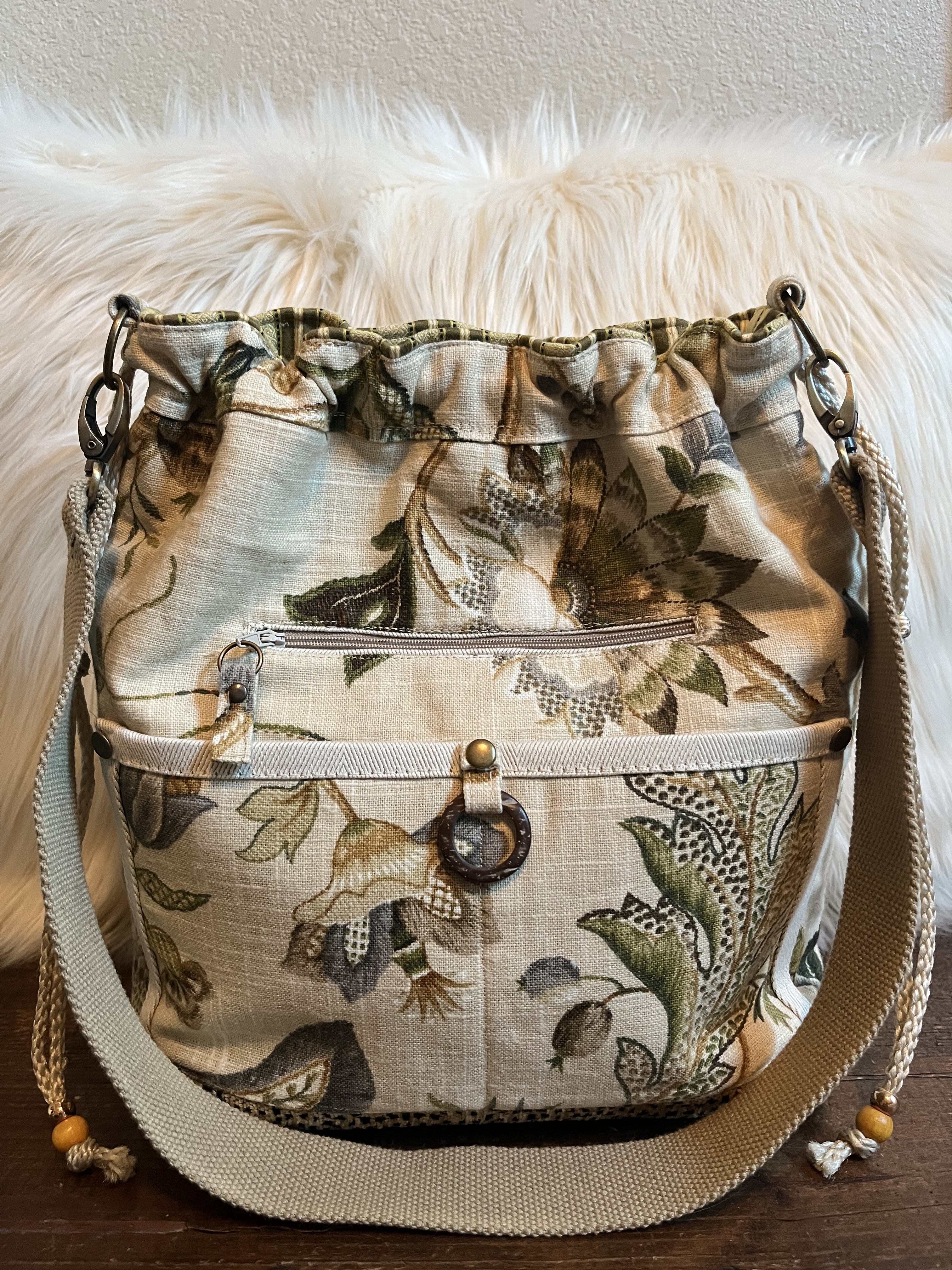Tucumcari This is a 12″ x 13″ x 4″ handbag with a 32″ strap, purse feet, a zip closure, back zip pockets, 2 back slip pockets, 6 interior slip pockets as well as an interior zip pocket. $72 Tucumcari (front) Tucumcari (interior) Tucumcari (back) Share this:Tweet