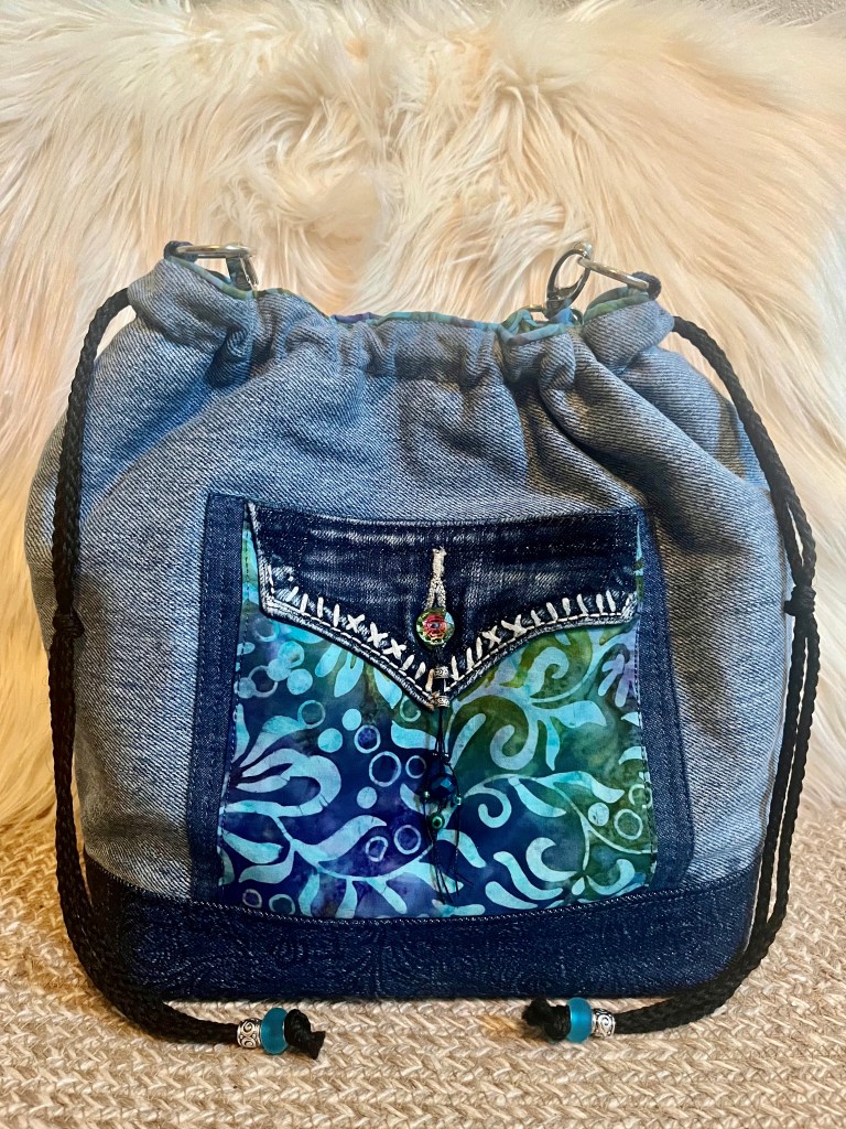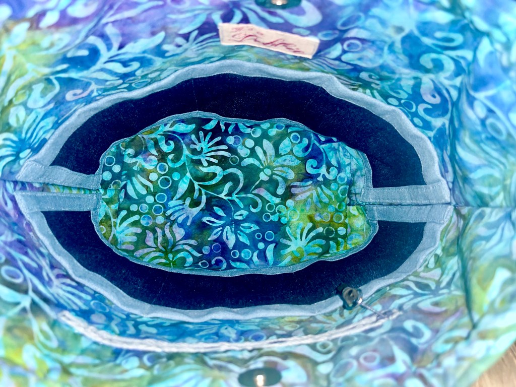 Under The Sea This is a 14” X 12” X 5” Draw/snap closure, shoulder Handbag with a 23” strap, an ornate front slip pocket, a back zip pocket, 6 interior slip pockets as well as a zip pocket and purse feet. $75 Under The Sea (front) Under The Sea (interior) Under The Sea (back) Share this:Tweet