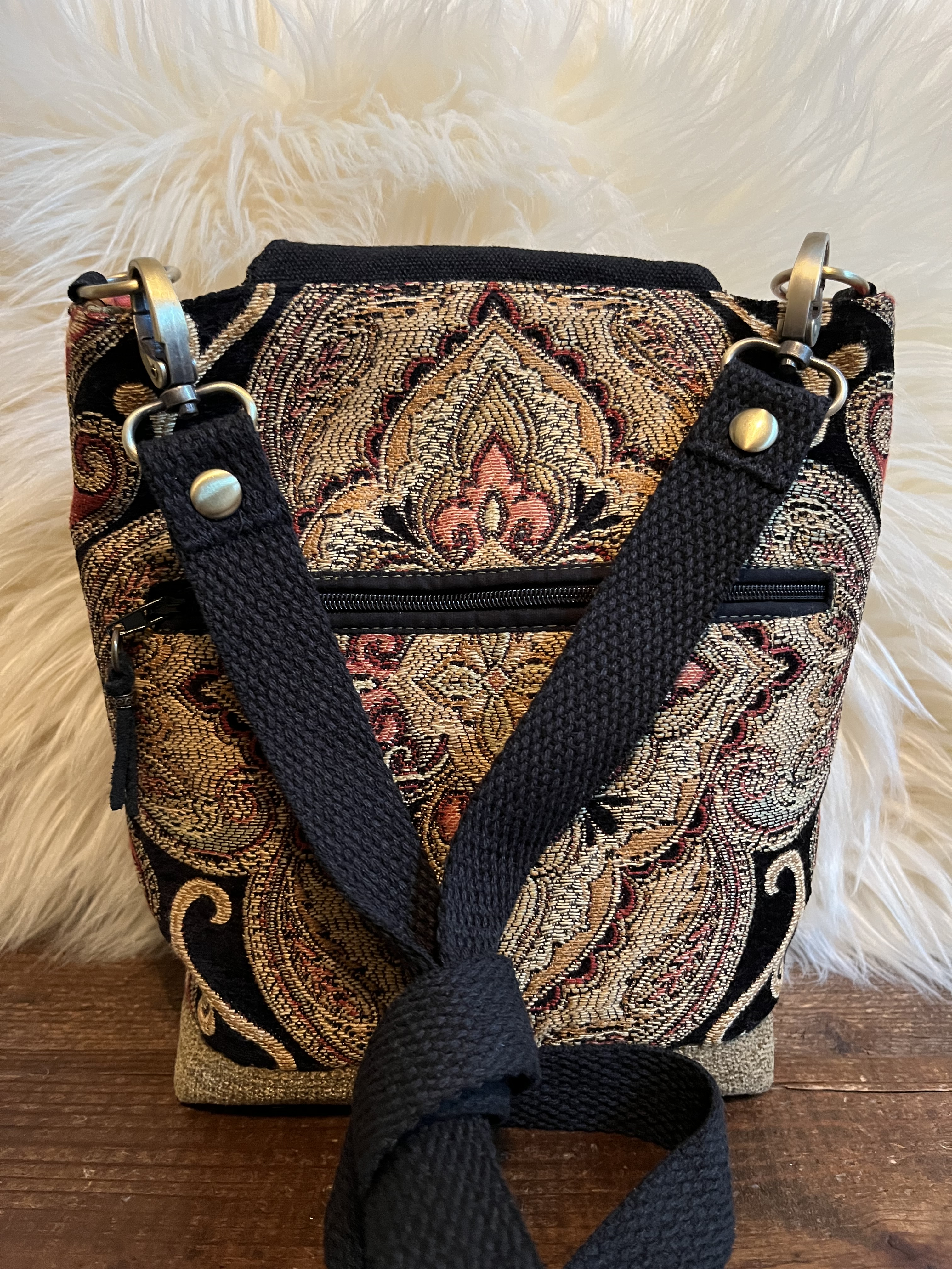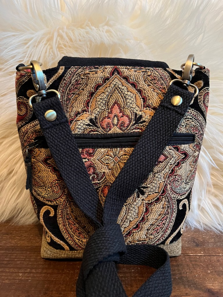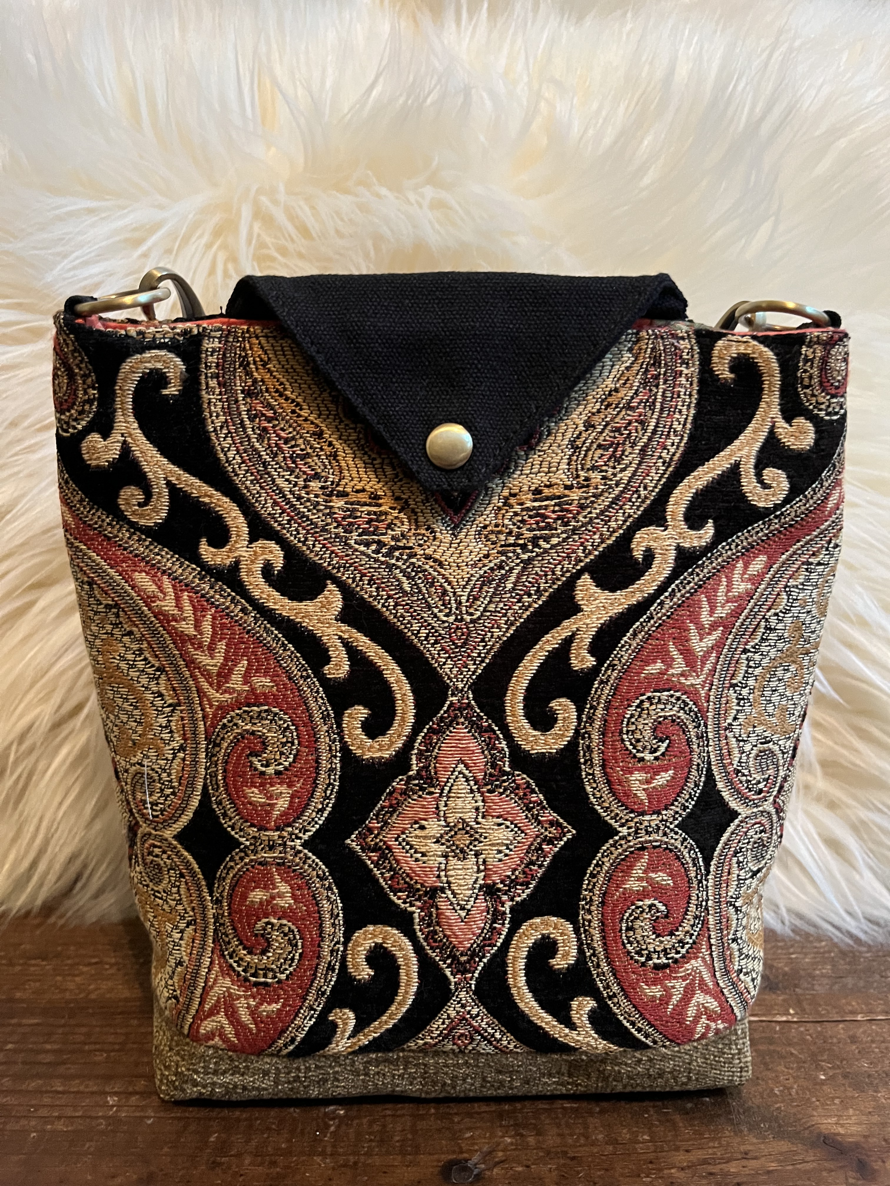 Upper Crust This is a 8″ x 9″ x 2″ Cross-body handbag with a 49″ strap, a back zip pocket, 2 invisible closure magnets, a snap/flap, 4 interior slip pockets and purse feet as well. $69 Upper Crust (front) Upper Crust (interior) Upper Crust (back) Share this:Tweet