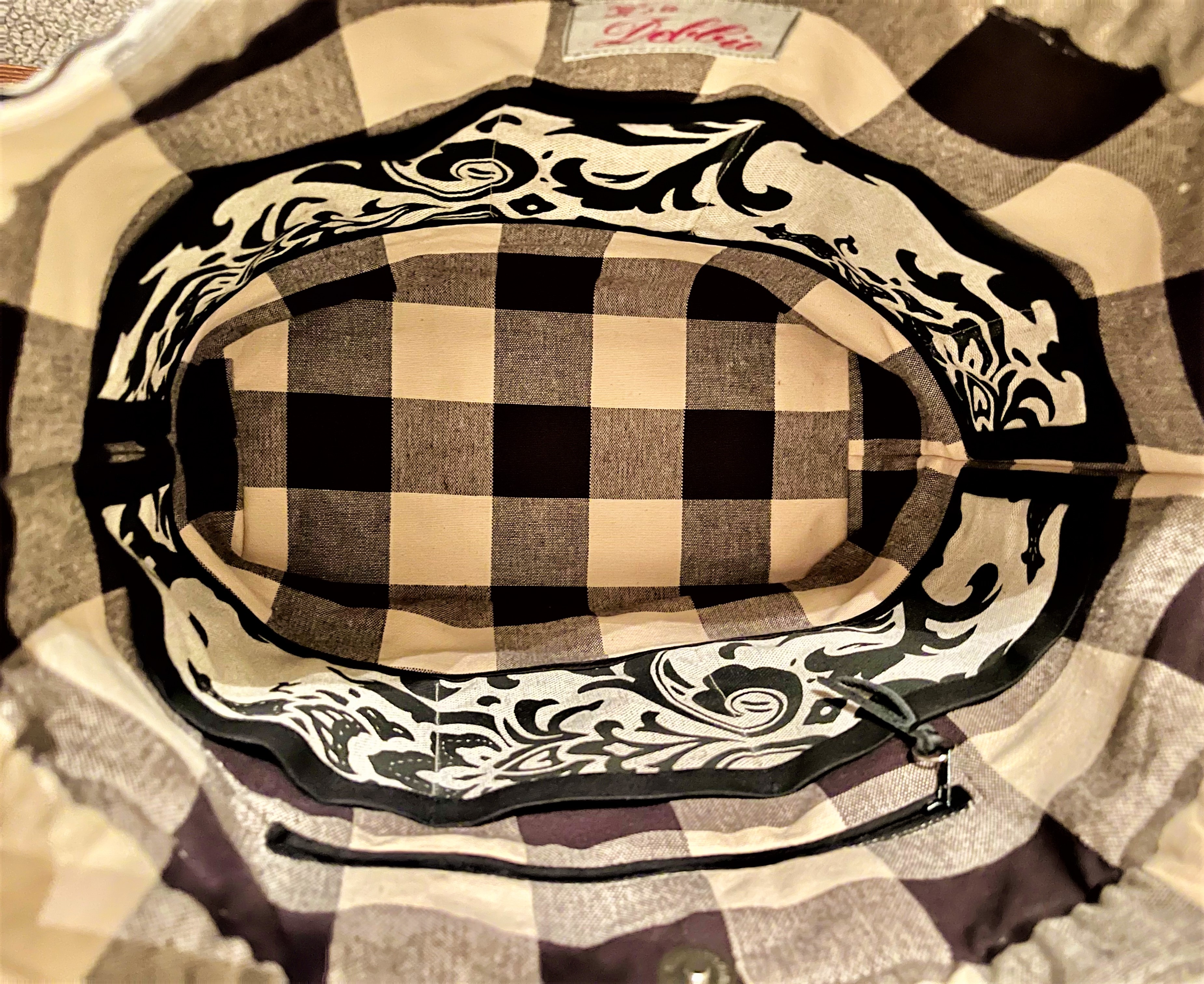 Victory This is a 16″ x 14″ x 5″ Shoulder Handbag with a 32″ strap, purse feet, 3 front slip pockets, a back zip pocket, 7 interior slip pockets as well as a zip pocket. $74 Victory (front) Victory (interior) Victory (back) Share this:Tweet
