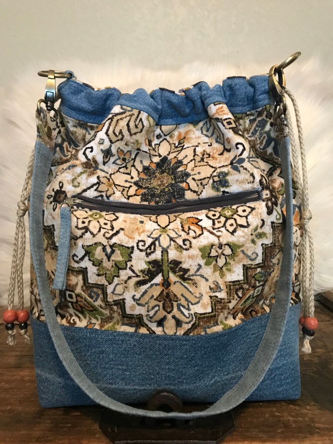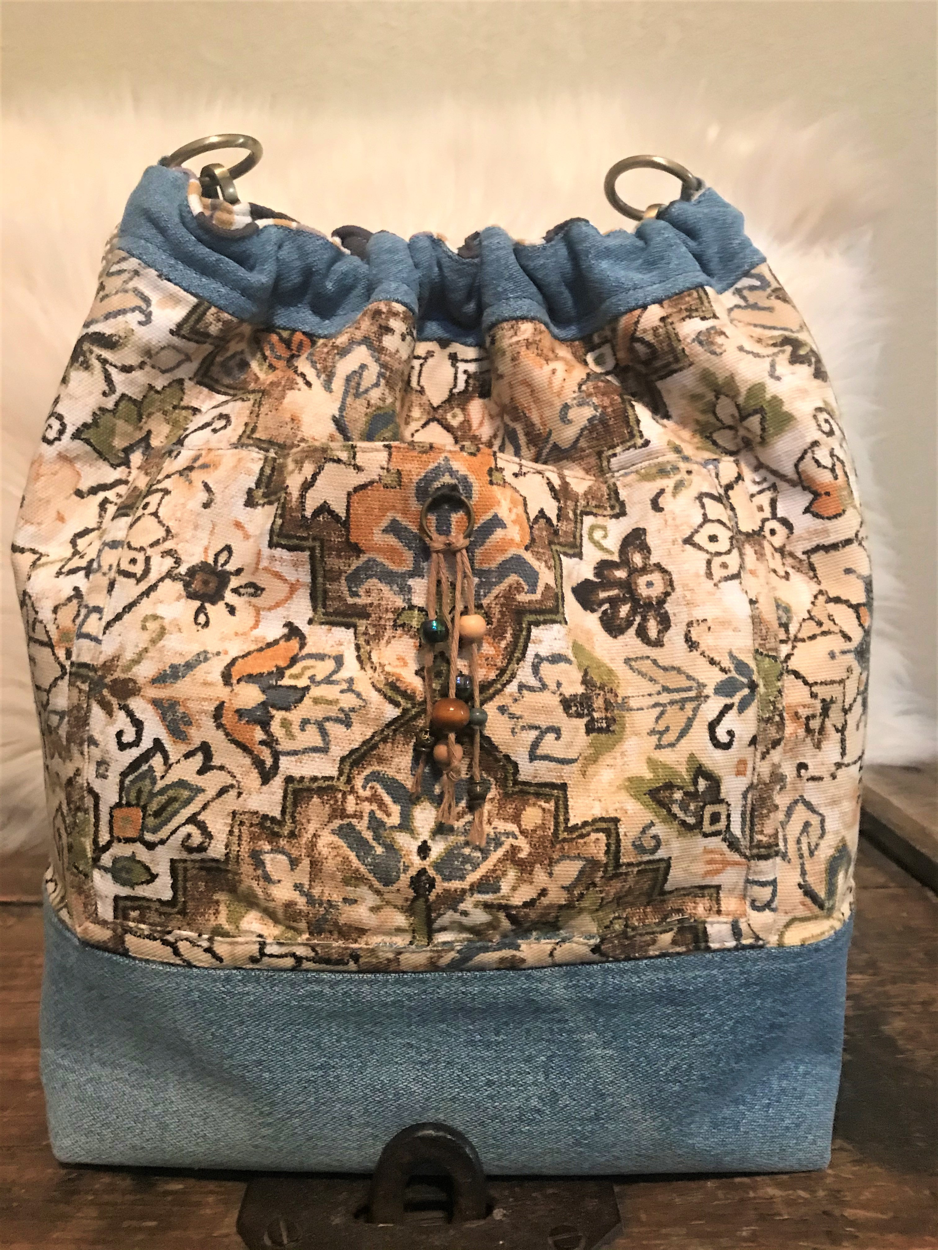 West Coast This is a 13″ x 13″ x 4″ Drawstring/Shoulder Bag with a 31″ strap, purse feet, a front dual slip pocket, a back zip pocket, 6 interior slip pockets as well as a zip pocket, a drawstring/snap closure. $72 West Coast (front) Share this:Tweet