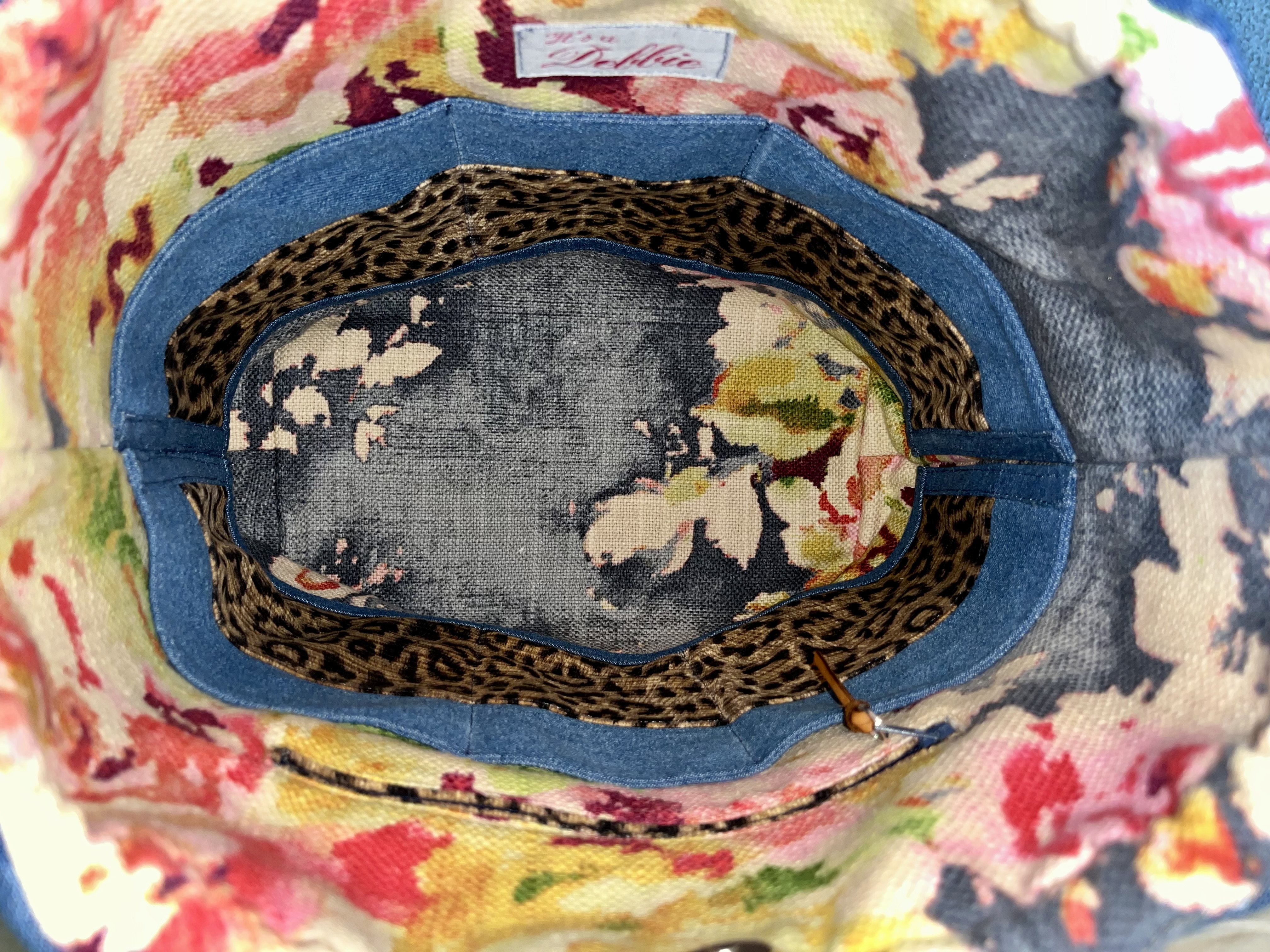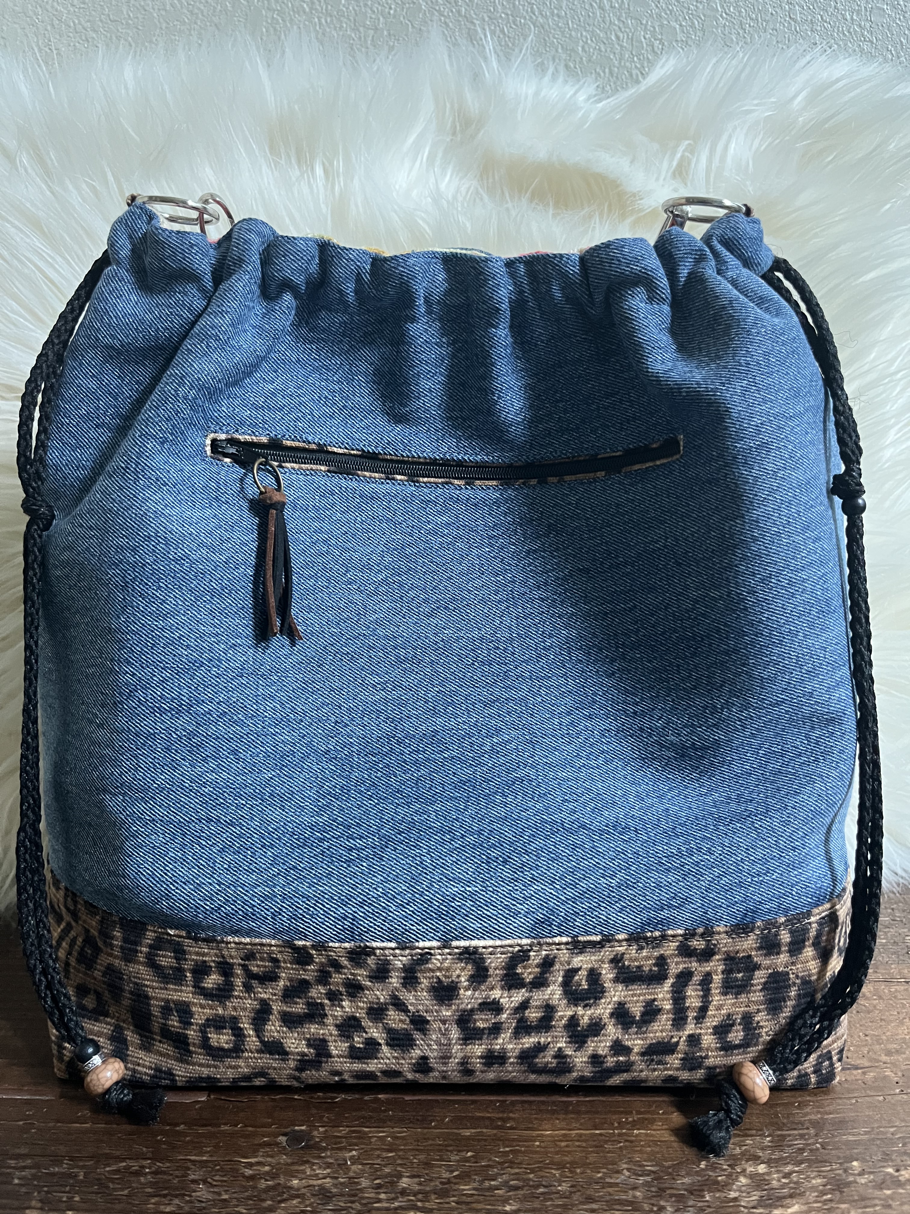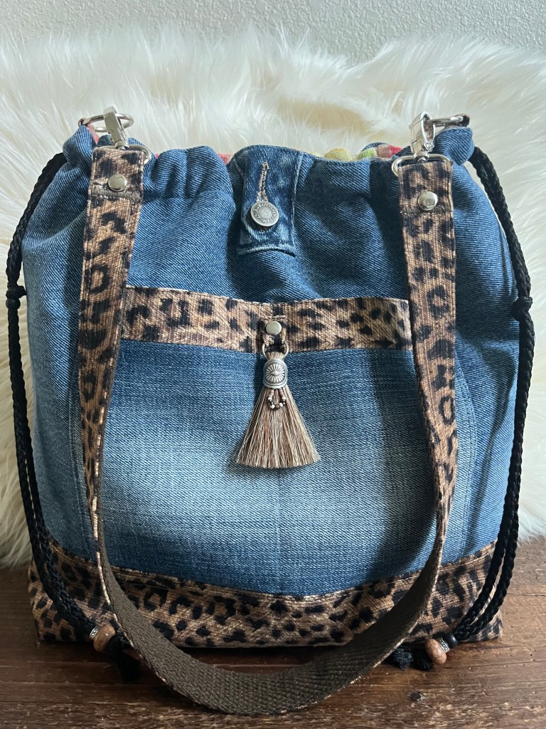This is a 14″ x 13″ shoulder handbag with a drawstring/snap closure, a 32″ strap, 2 twin, front slip pockets, back zip pocket, horse hair tassel embellishment, purse feet, 6 interior slip pockets as well as a zip pocket.