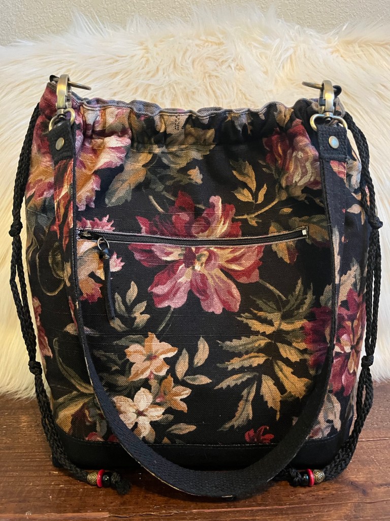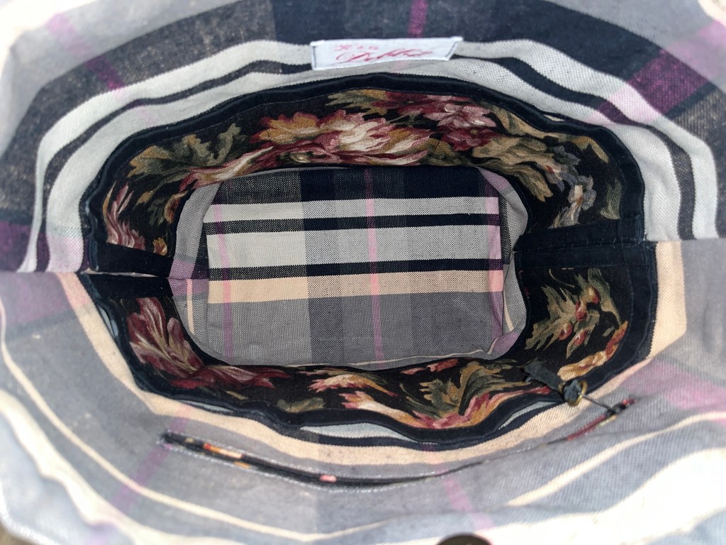 Yours Truly This is a Snap/draw closure Shoulder Handbag with a 32” strap, 3 front slip pockets, a back zip pocket, purse feet, 6 interior slip pockets as well as a zip pocket. $75 Yours Truly (front) Yours Truly (interior) Yours Truly (back) Share this:Tweet